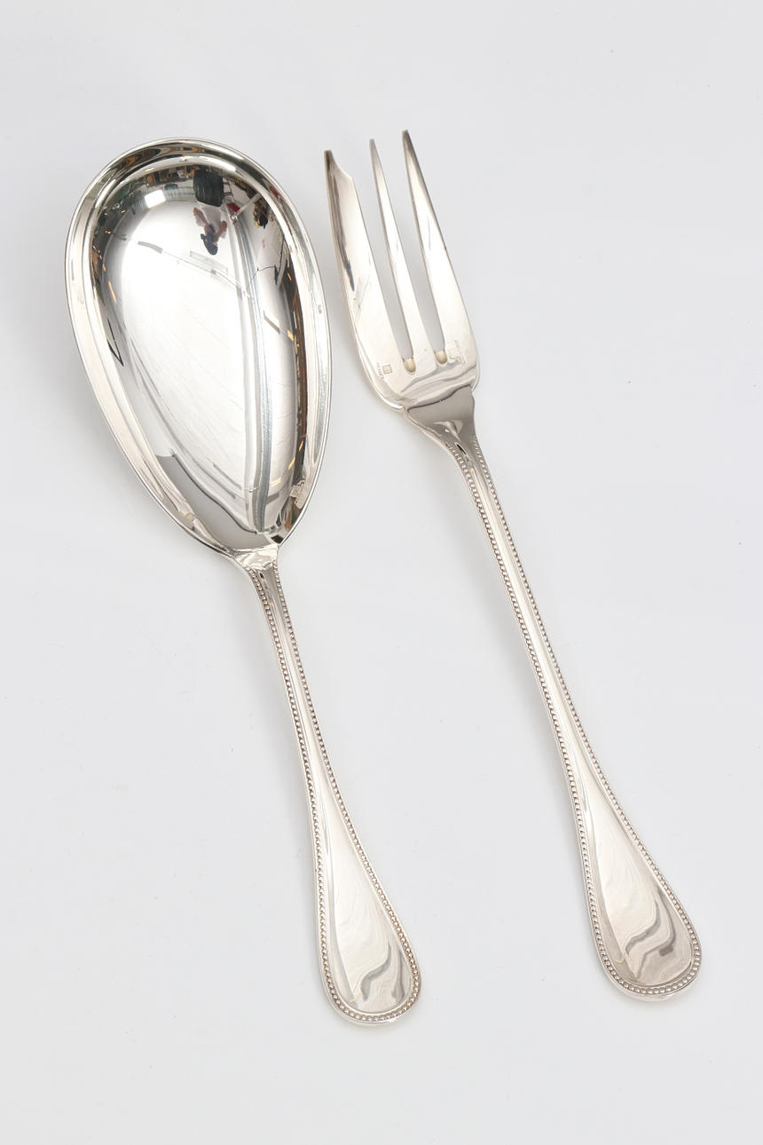 Neues Silberbesteck 78-teilig, von Christofle aus der Serie „Perles“