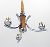 Drahtgewickelter Rahmen aus verchromtem Metall und gebeiztem Holz.