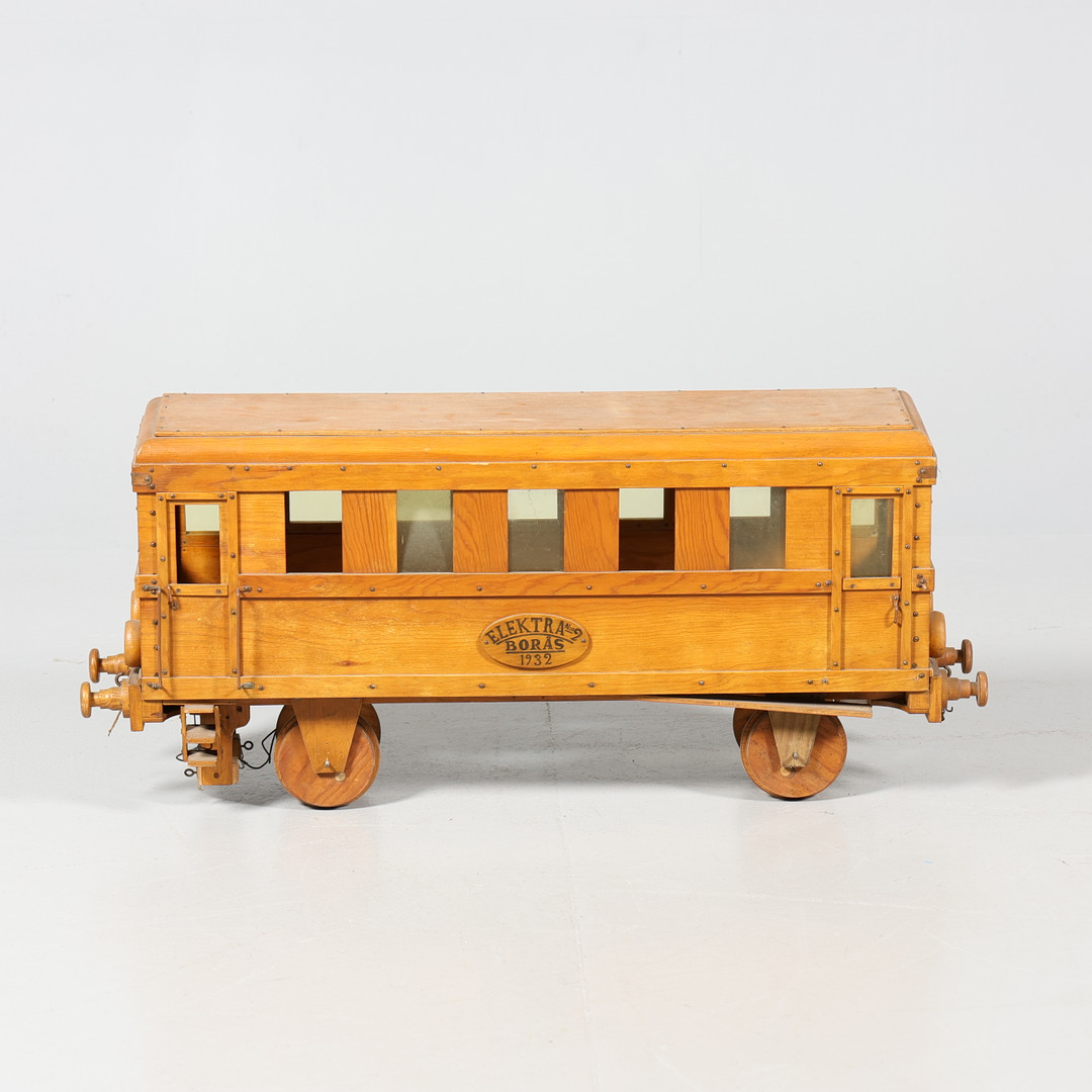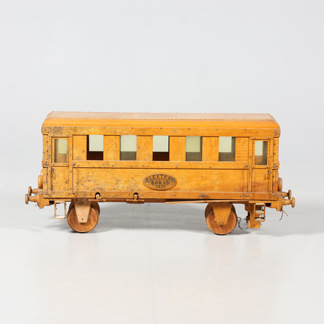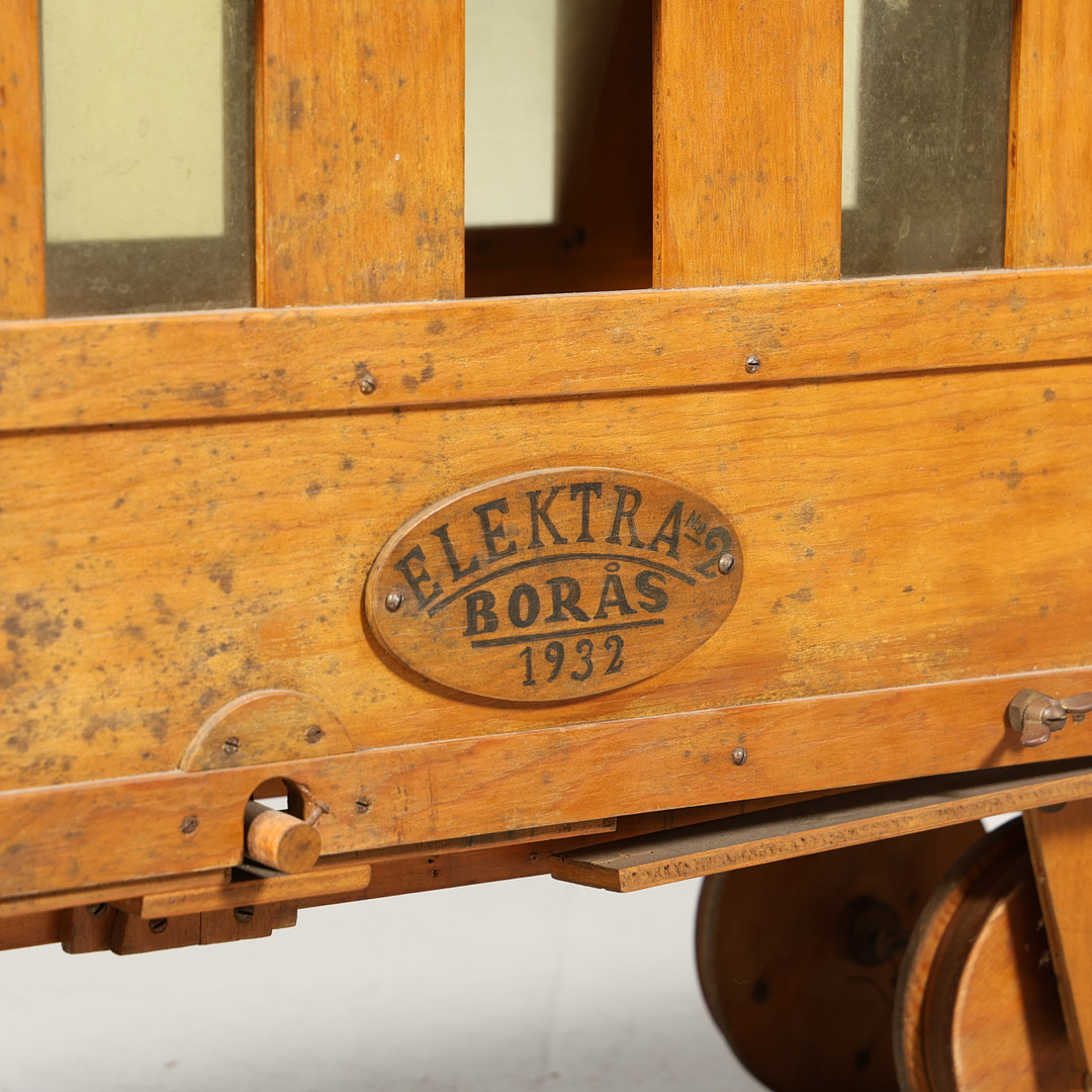 4139508. MODELLEISENBAHN, 2 Stück, Holz, „Elektra Borås“.