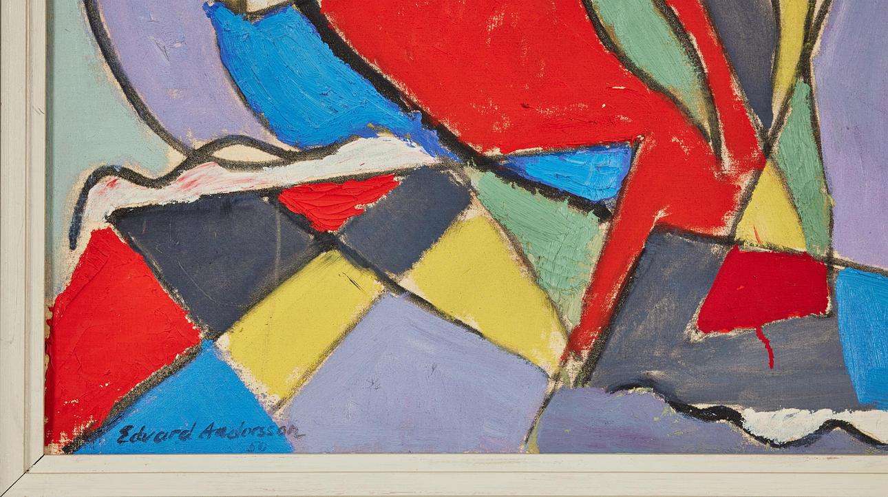 Öl auf Leinwand, auf Holz montiert, 69,5 x 100 cm, einschließlich Rahmen 77 x 108 cm. Signiert Edvard Andersson, datiert auf der Rückseite 1951.