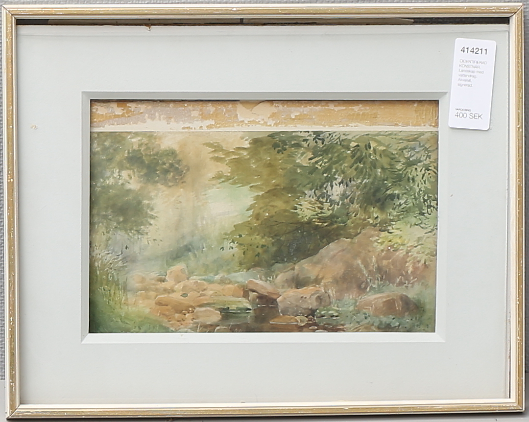 414211. AUSTIN WINTERBOTTOM. Landschaft mit Bächen. Aquarell, signiert.