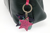 mit Frontklappe mit Reißverschluss und Innenfach mit Reißverschluss, Hundemarke und Lederschlüsselring mit Hund und Stern, rosafarbener Staubbeutel, 25 cm hoch (exkl. Griffe) x 38 cm breit.