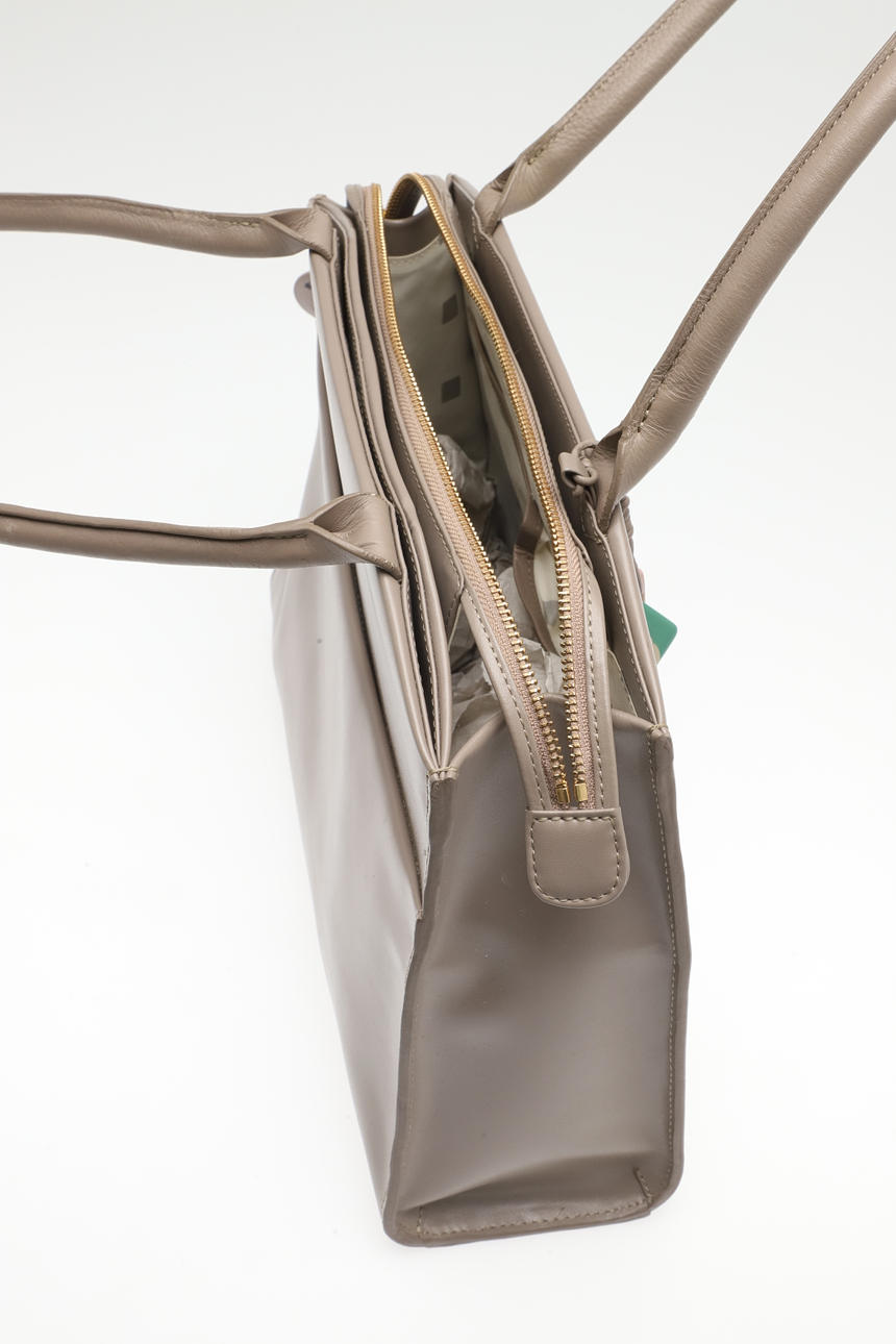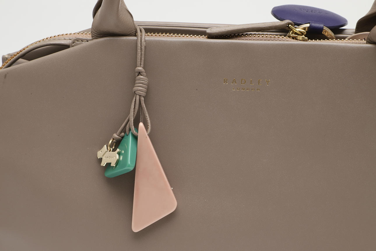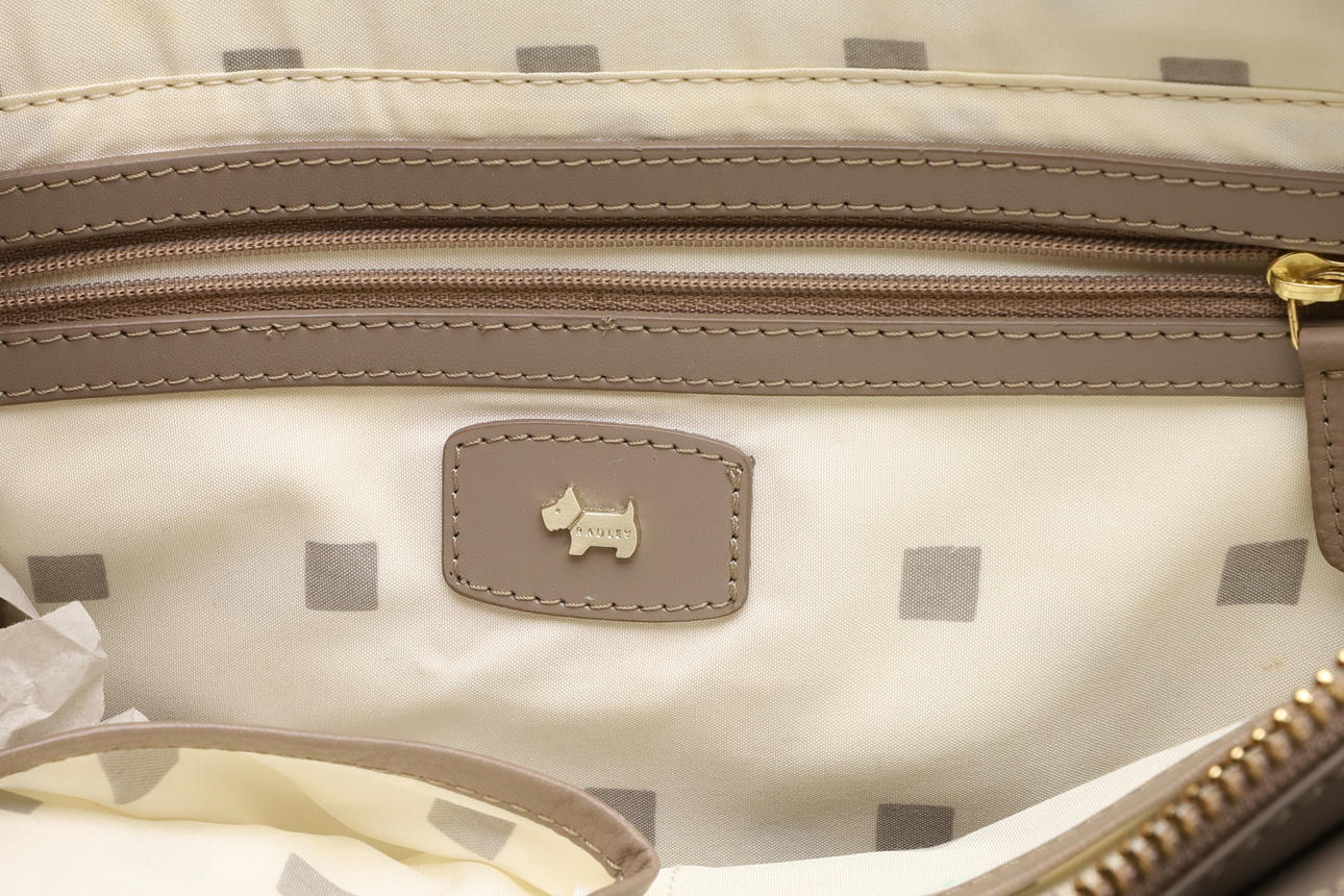 EINE HANDTASCHE AUS GRAUEM LEDER VON RADLEY.