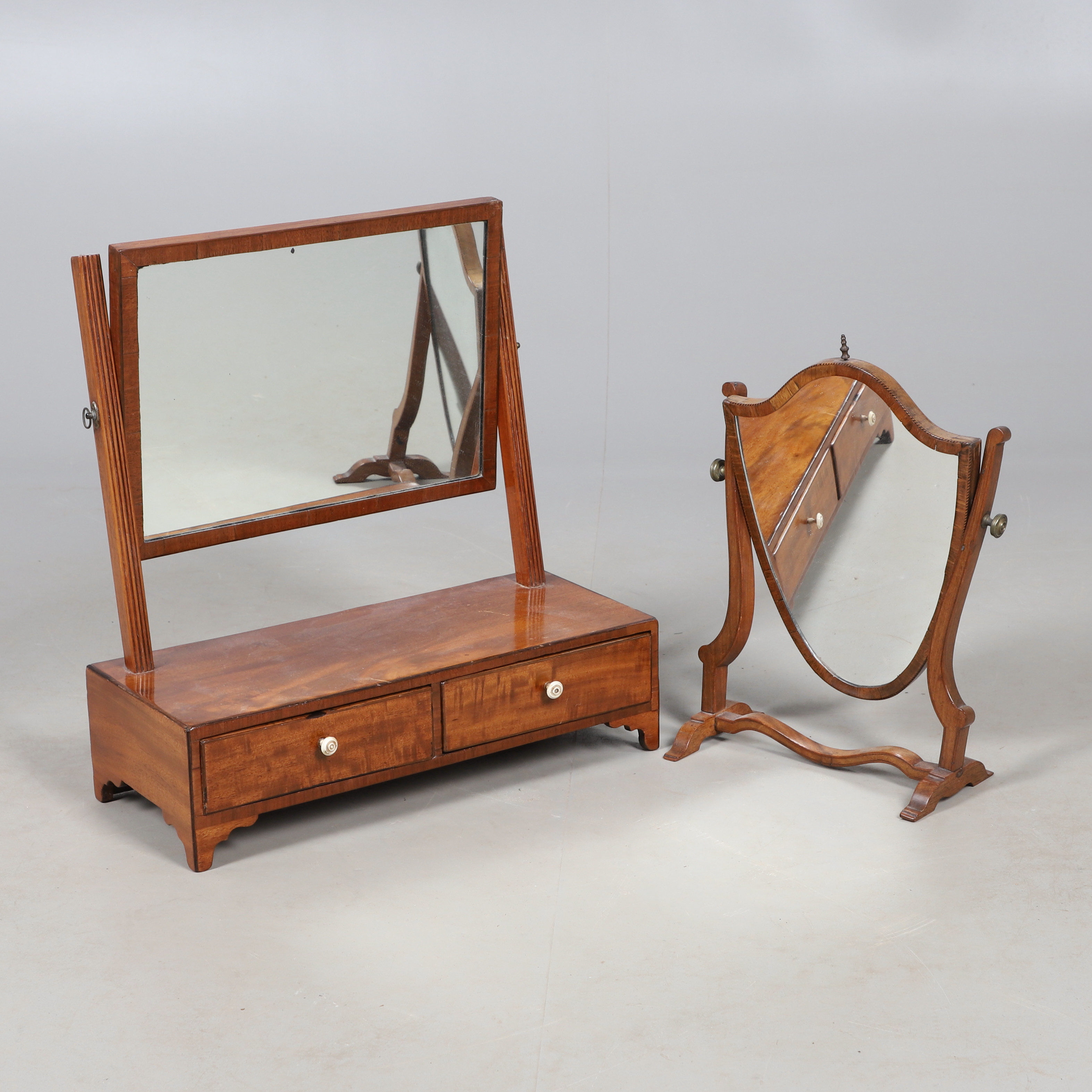 4142863. ZWEI TOILETTENSPIEGEL MIT SCHAUKELRAHMEN AUS MAHAGONI-RAHMEN.
