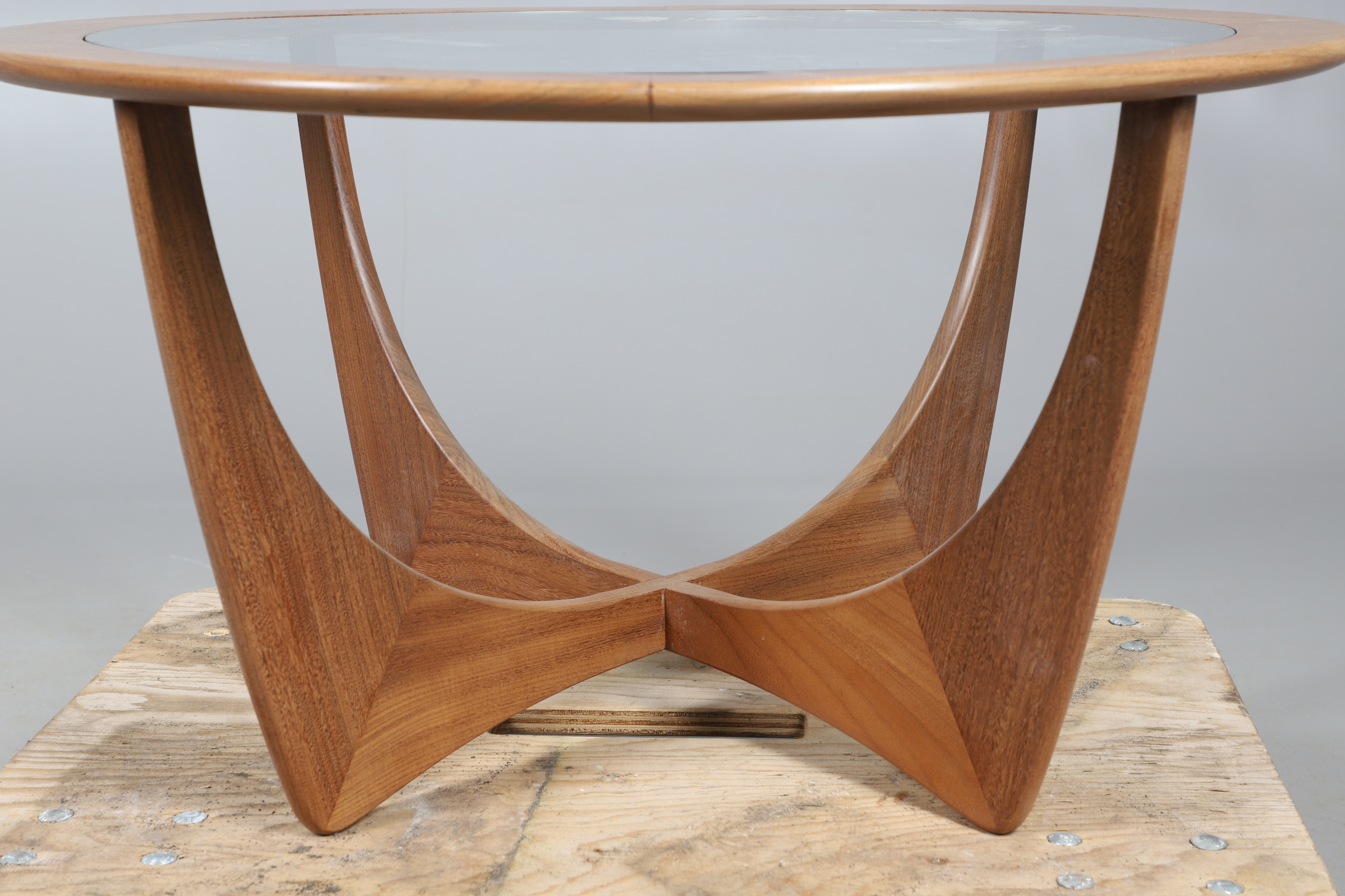 4142886. EIN G-PLAN ASTRO-TISCH MIT TEAKHOLZRAHMEN UND GLASPLATTE.