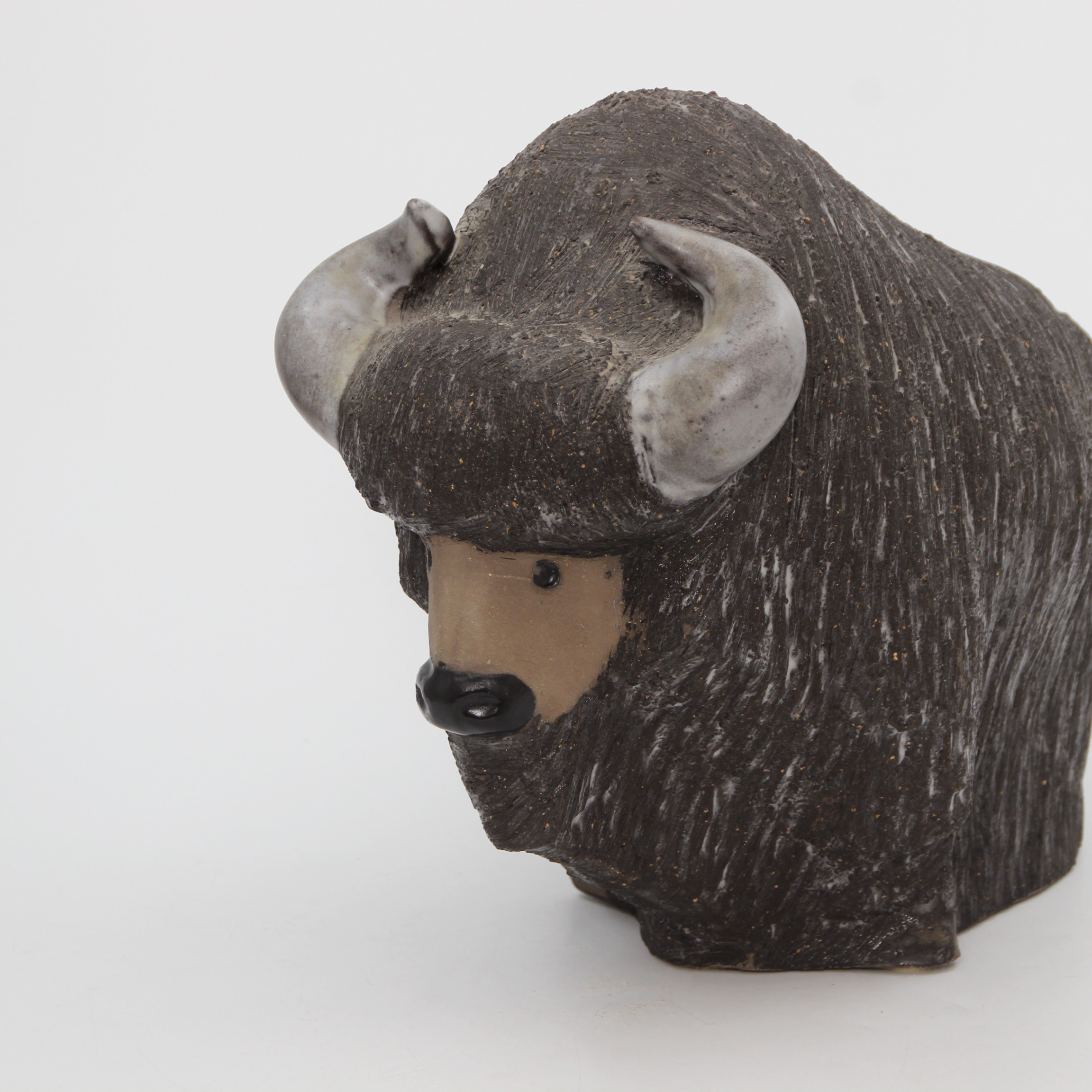 4157499. FIGUR, STEINZEUG, GROSSE MOSCHUSOCHSE/BISONOXE, UPSALA EKEBY.