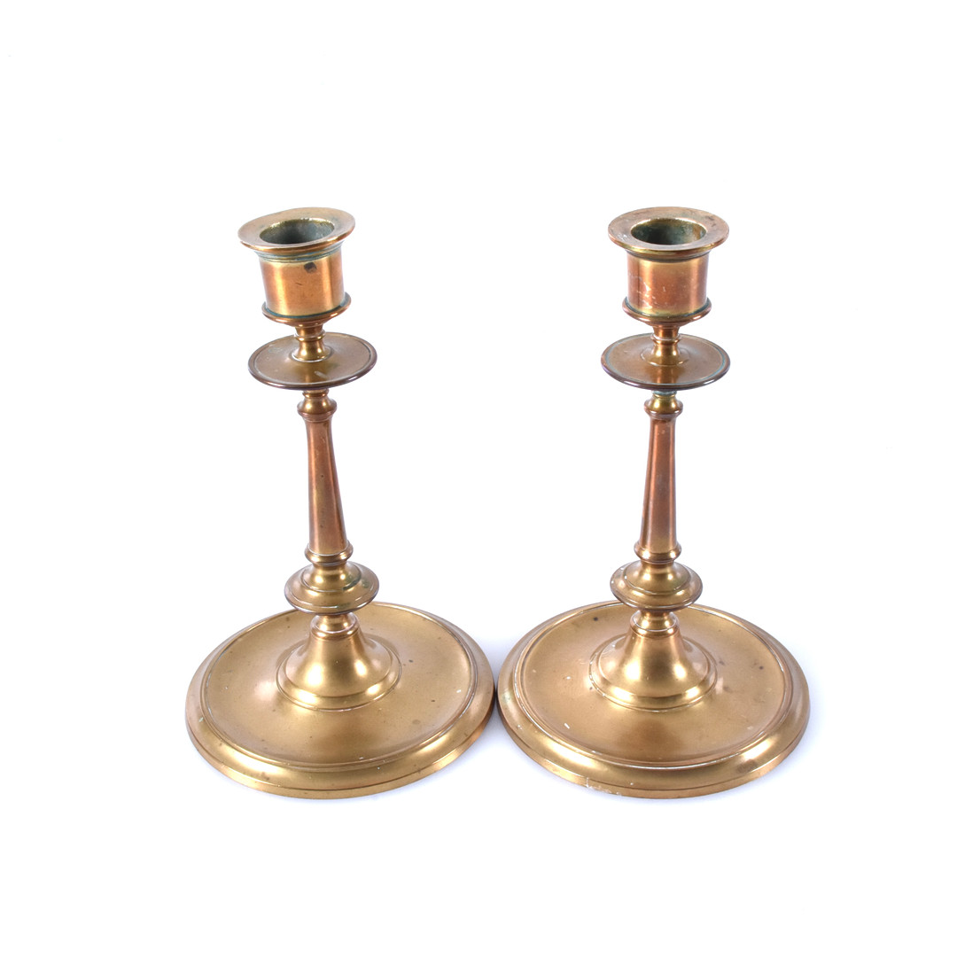 4158090. Ein Paar Messing-Kerzenhalter aus dem 20. Jahrhundert.