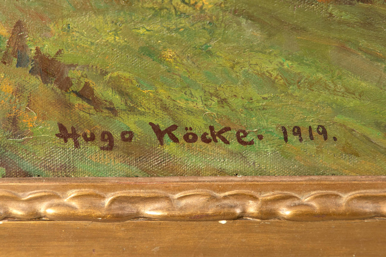 Hugo Köcke (1874-1956), Grosse Flusslandschaft, Öl auf Leinwand, 1919, signiert und datiert, rückseitig nochmals signiert, datiert und bezeichnet 'Berlin', ca. 100 x 150 cm, mit Rahmen ca. 124 x 174 cm.