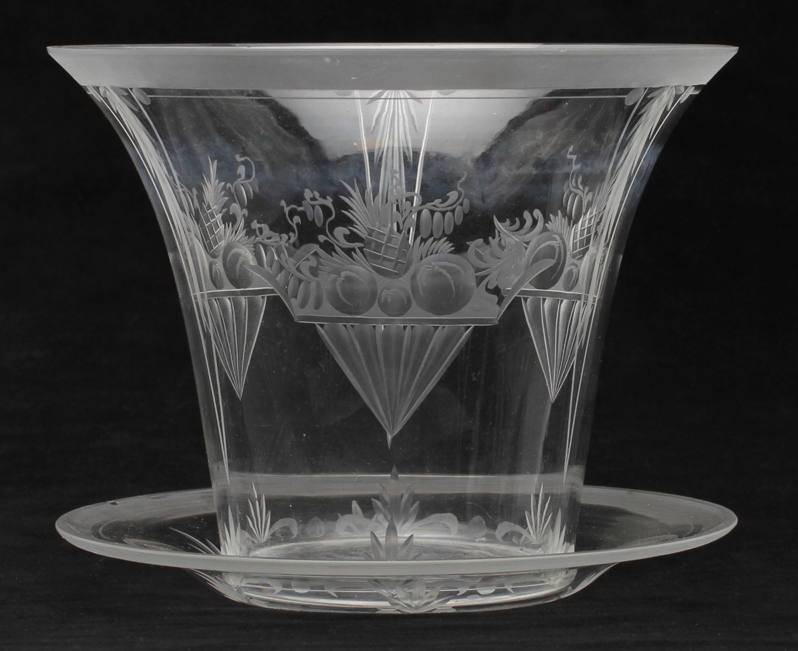 41610. OBSTSCHALE mit TELLER, Glas, signiert Kjellander.