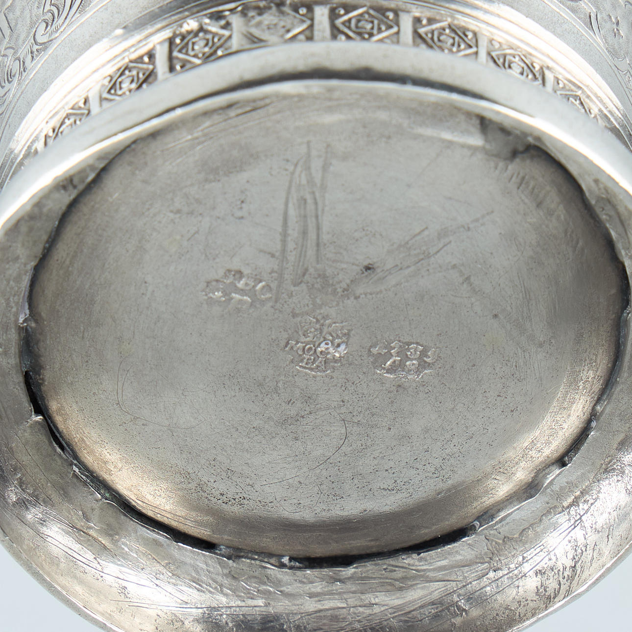 Banddekor, stilisierter Rand. Durchmesser 9,6; Höhe 14 cm Gewicht ca. 186 g.