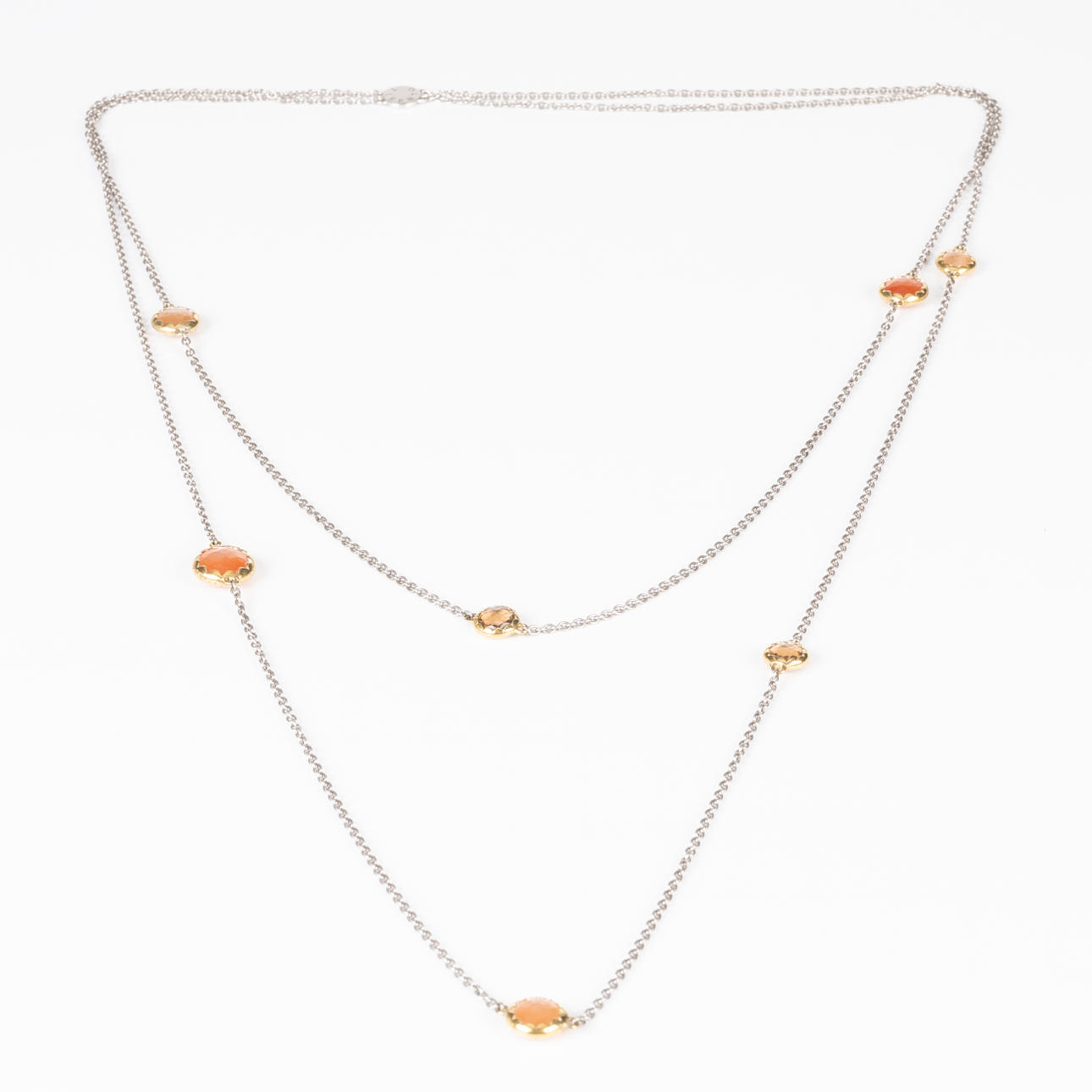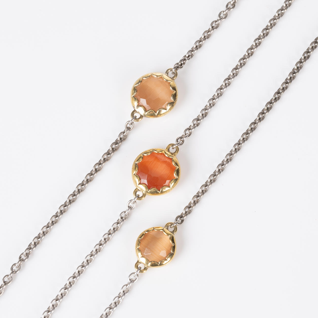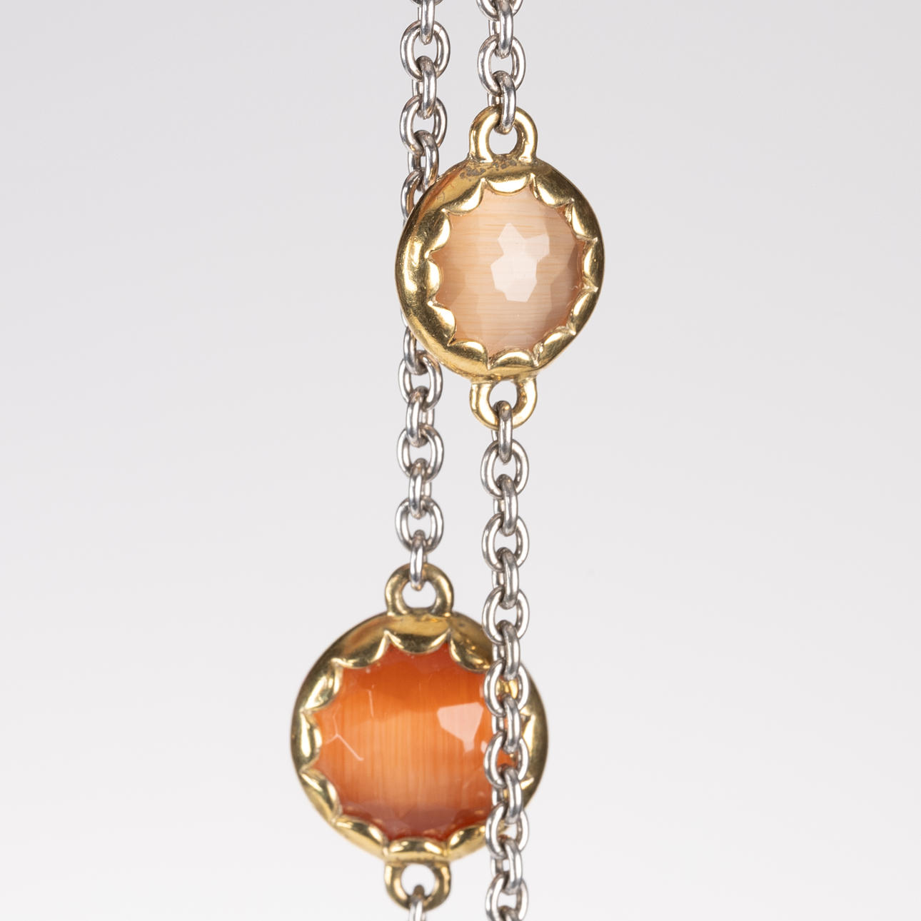 Halskette aus Sterlingsilber mit geschliffenen Steinen und vergoldetem Dekor