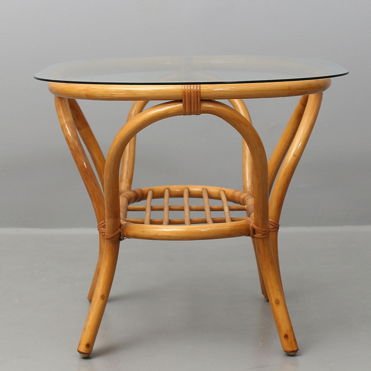 Bord i klarlackad rotting och avtagbar bordsskiva i glas