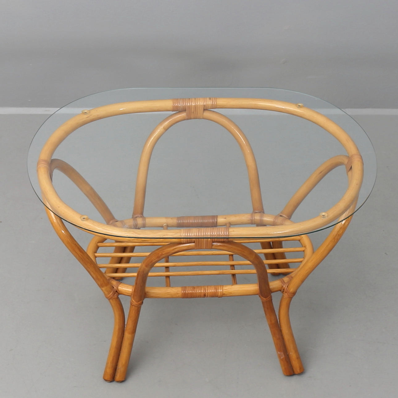 416555. COUCHTISCH aus Rattan mit Glasplatte, 20. Jh.
