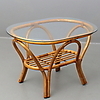 COUCHTISCH aus Rattan mit Glasplatte, 20. Jh.