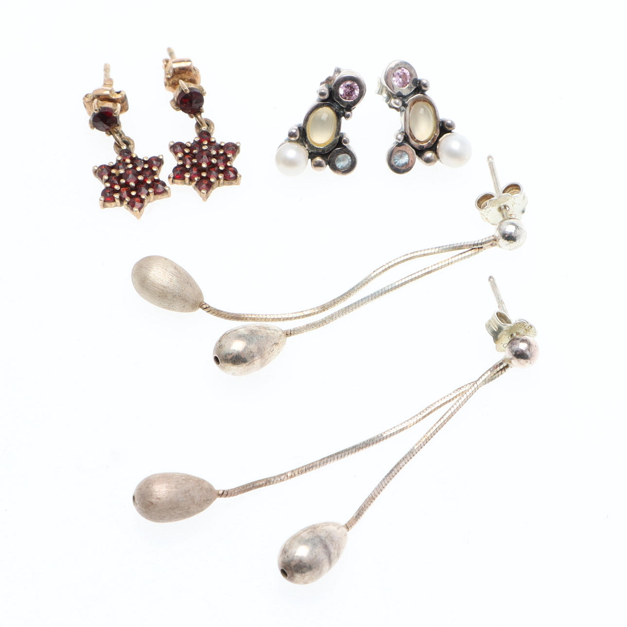 3 Paar Ohrringe, Steine und Granate, längste ca. 5 cm.