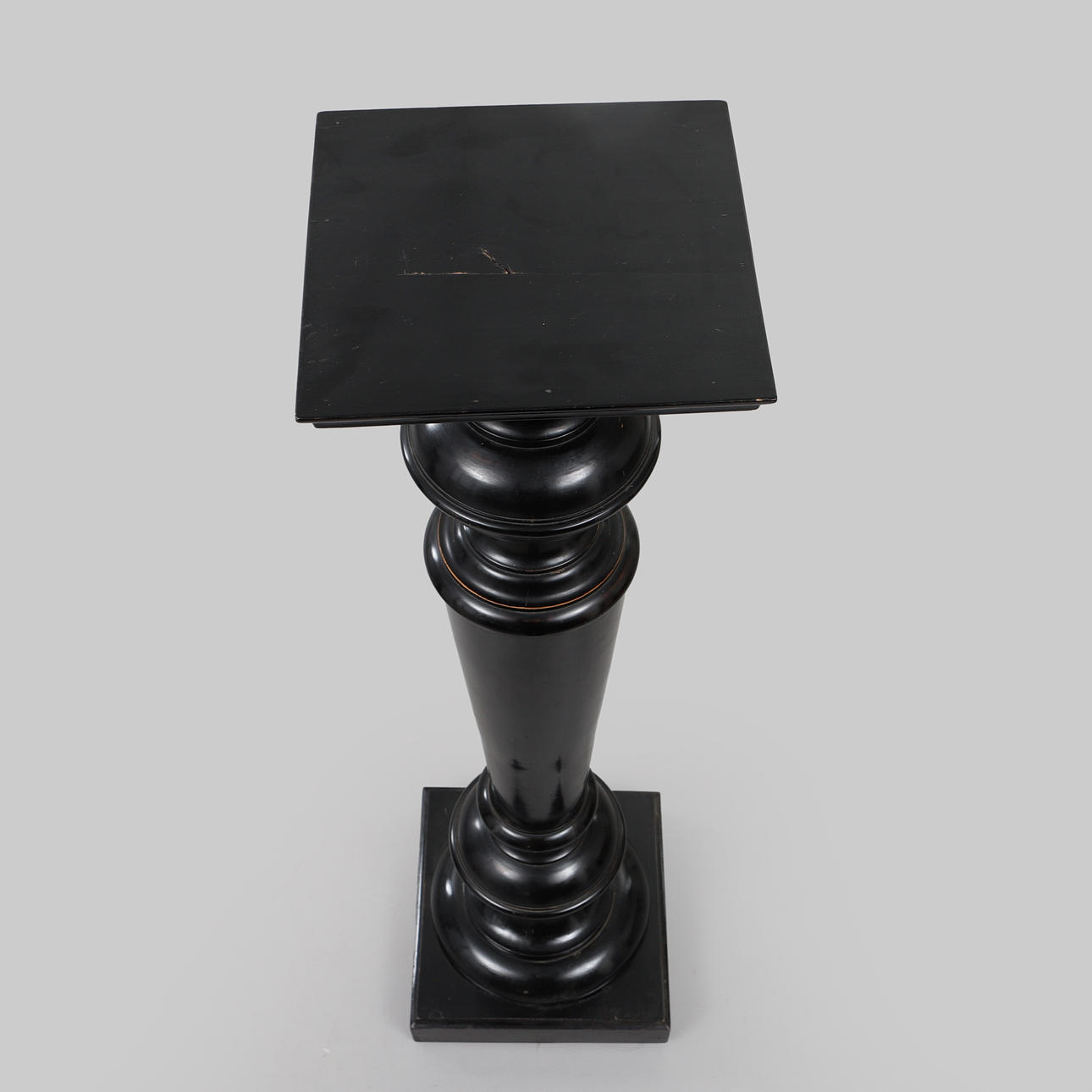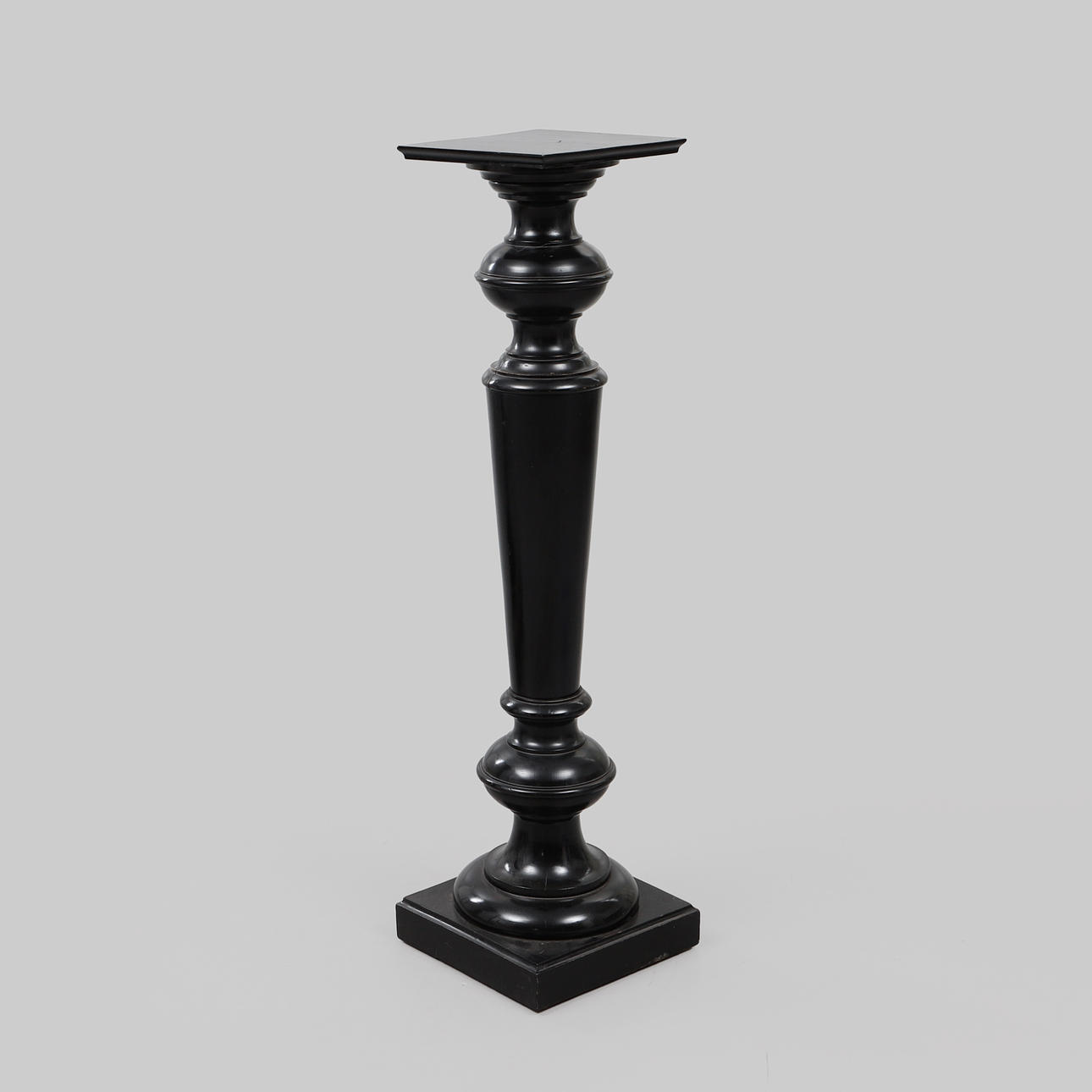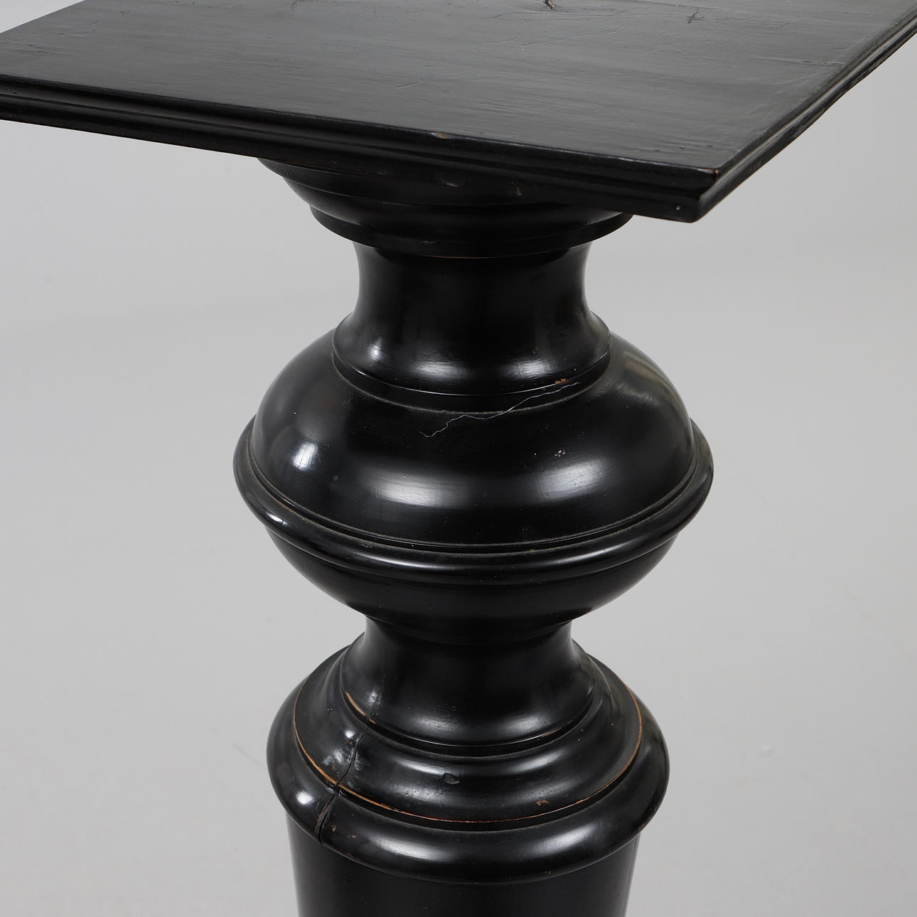 Schwarz lackiertes gedrechseltes Holz. Stempel unten markiert. Abmessungen ca. 31 x 31 x 114 cm.