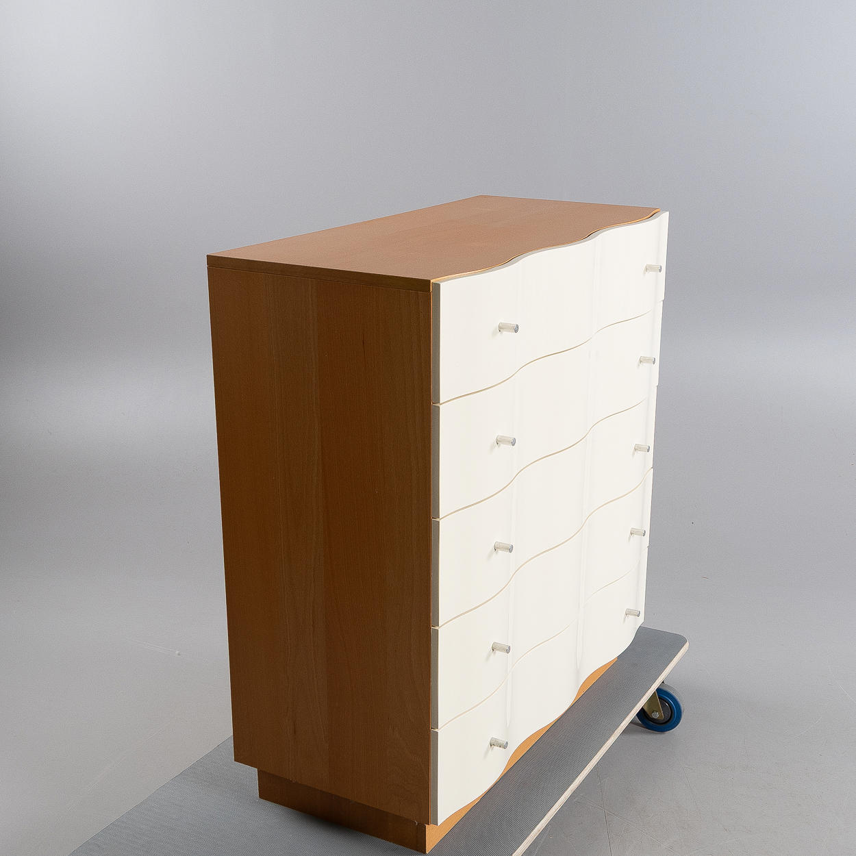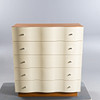Spanplatte aus Birkenfurnier, weiß lackierte Kunststofffront, fünf Schubladen