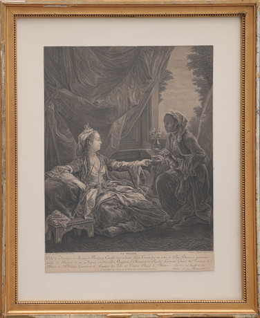 Altersgemäßer Zustand mit Gebrauchsspuren, minimaler Loch im Bezug. (2).