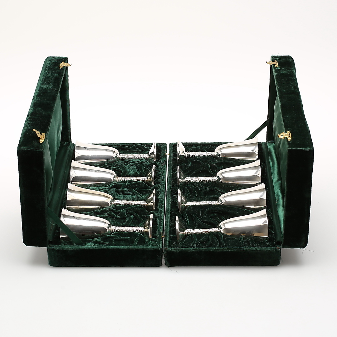 418479. GLAS, Neusilber, 8 Stück im Etui.