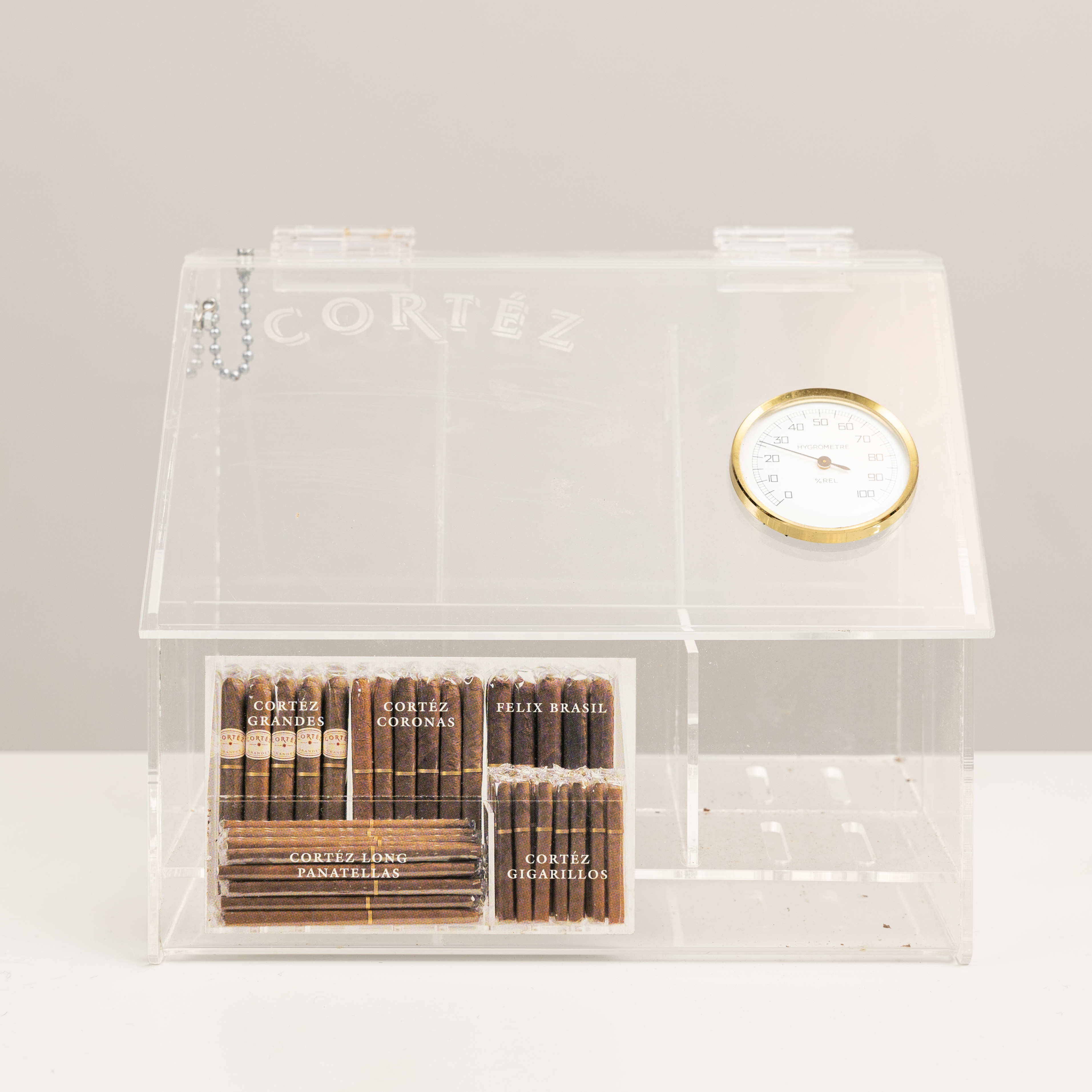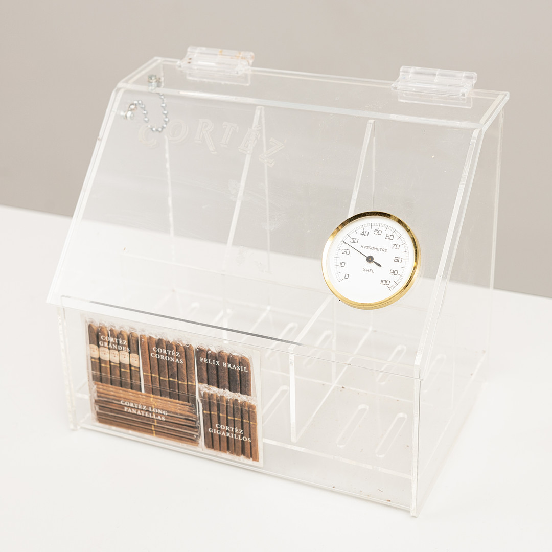 4185355. Ein Humidor aus Kunststoffglas mit Hygrometer, Cortéz.
