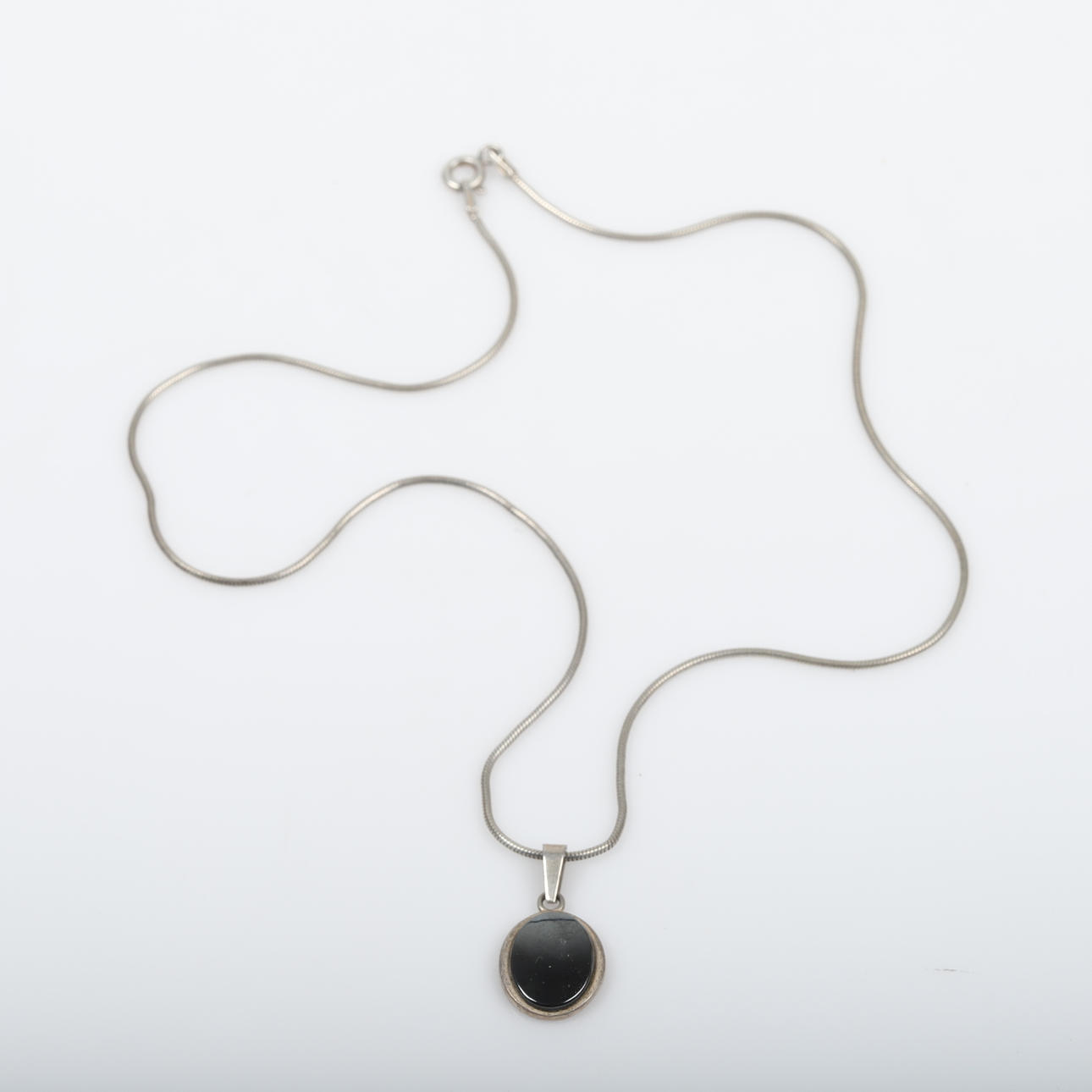 1 Anhänger mit Kette, Sterlingsilber mit Hämatit.