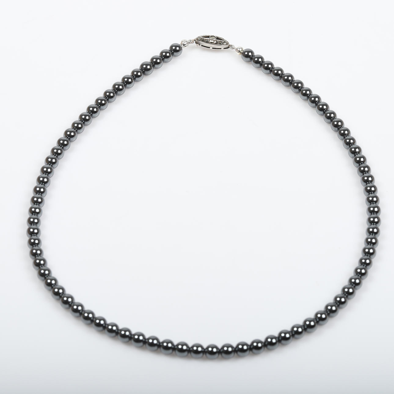 1 Halskette, Hämatit mit Verschluss aus Silber und Markasit, Länge 49 cm