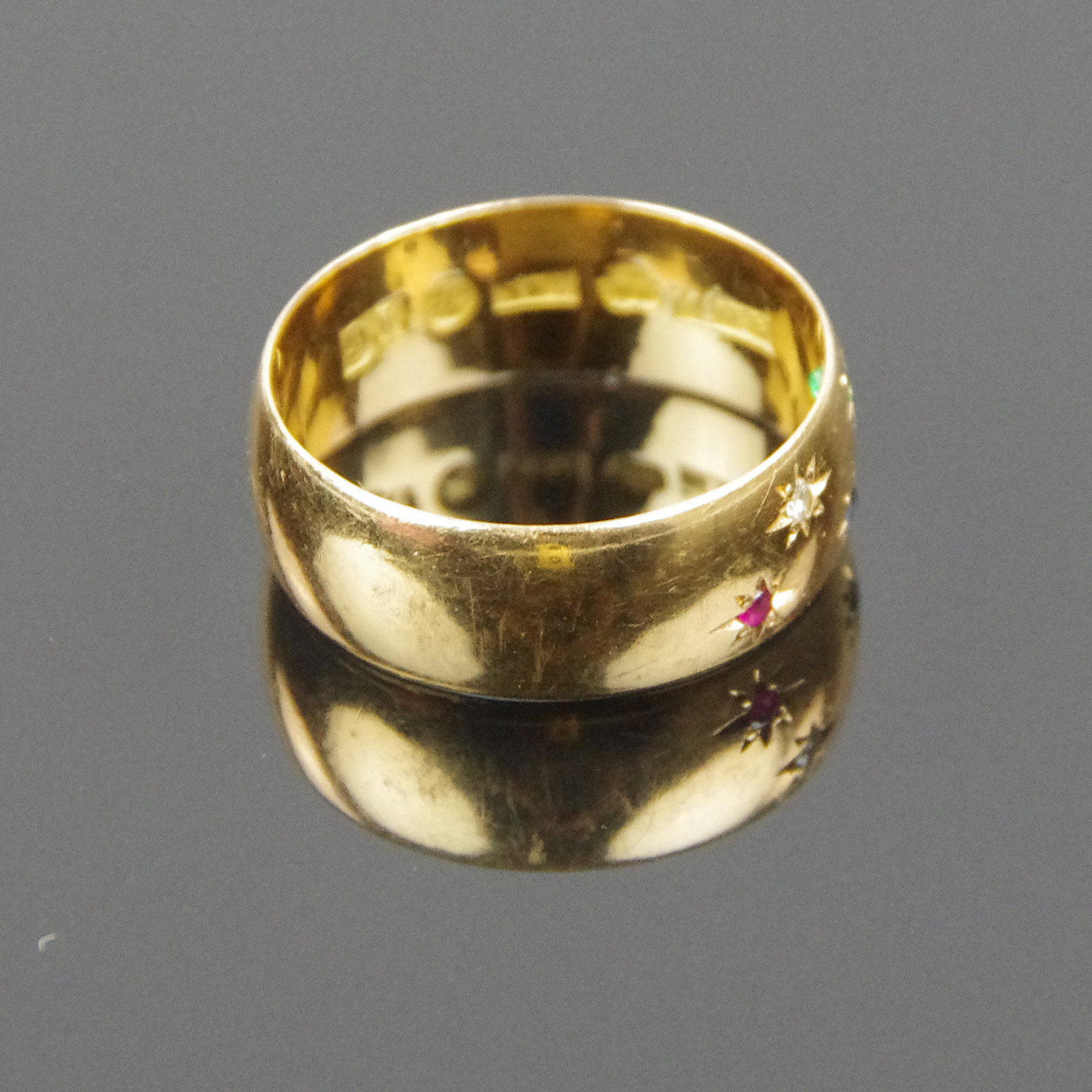 418896. RING, 18 Karat Gold mit farbigen Steinen.