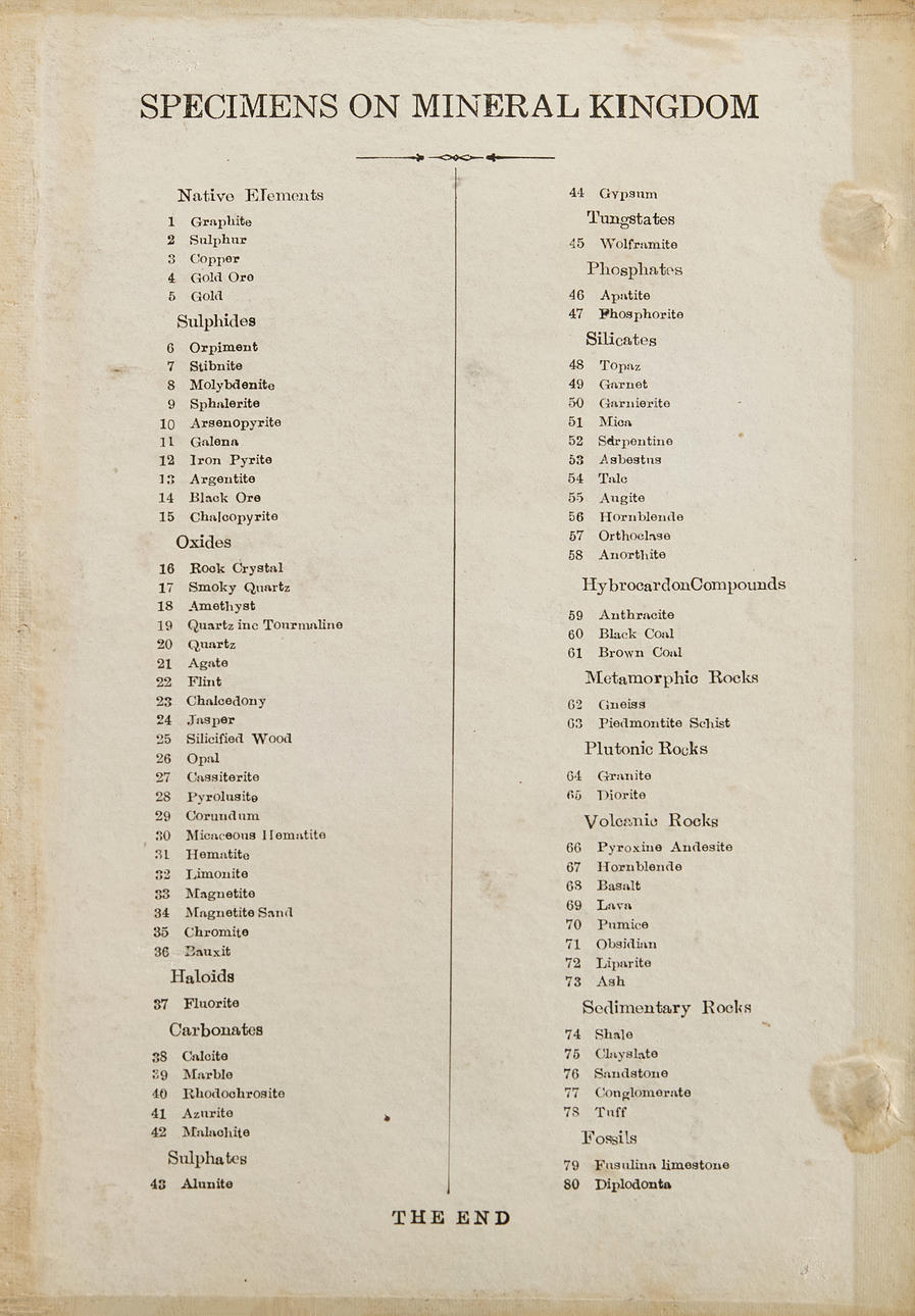 MINERALPROBEN, Mineraliensammlung 1900.