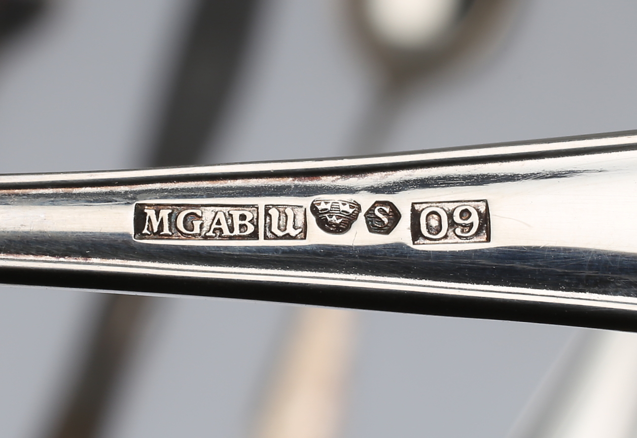 419167. BESTECKTEILE, Silber, "Disa", Gewicht ca. 457 Gramm.
