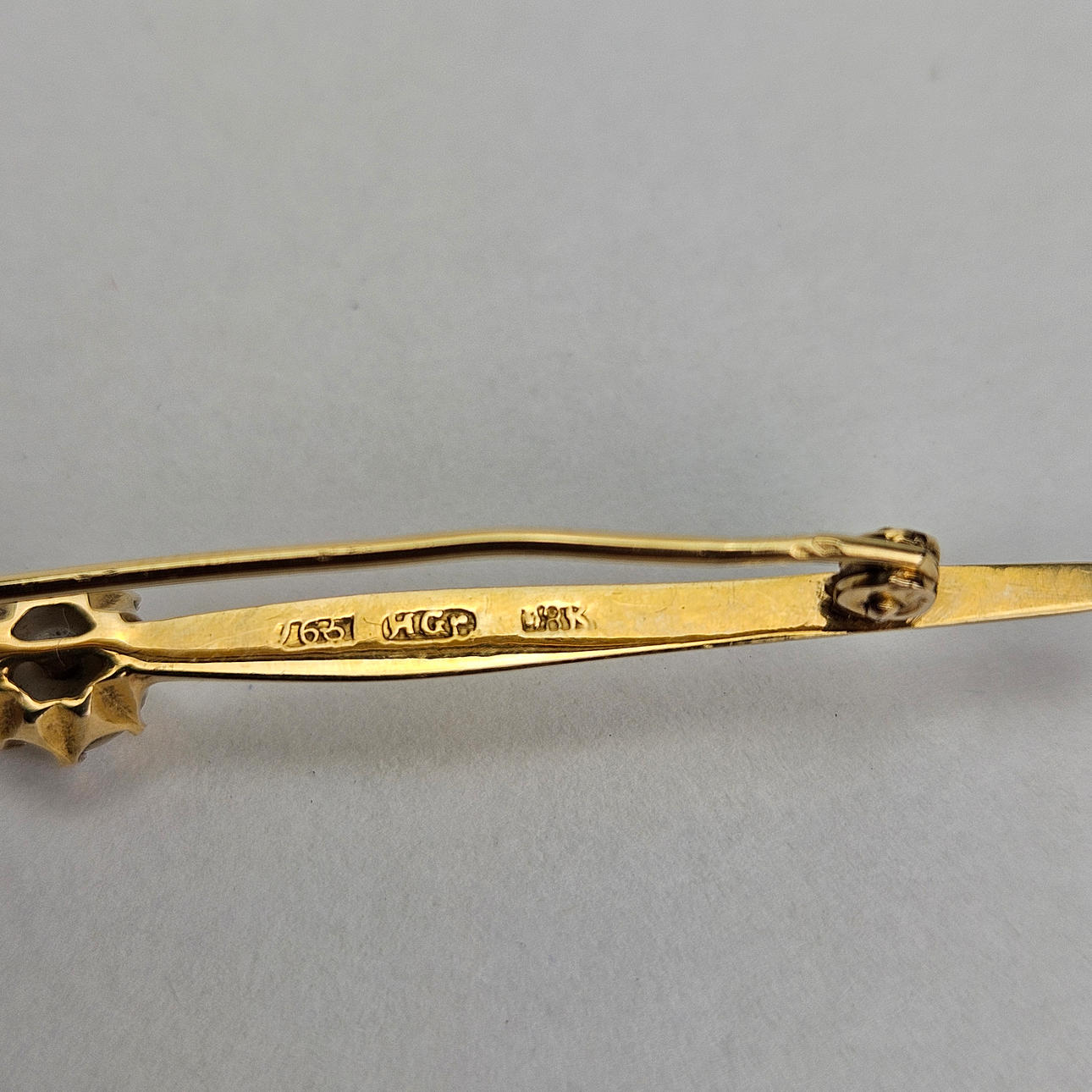 4193159. BROSCHE, Gold, 18 K, mit halber Perle, Gewicht ca. 1,7 Gramm.