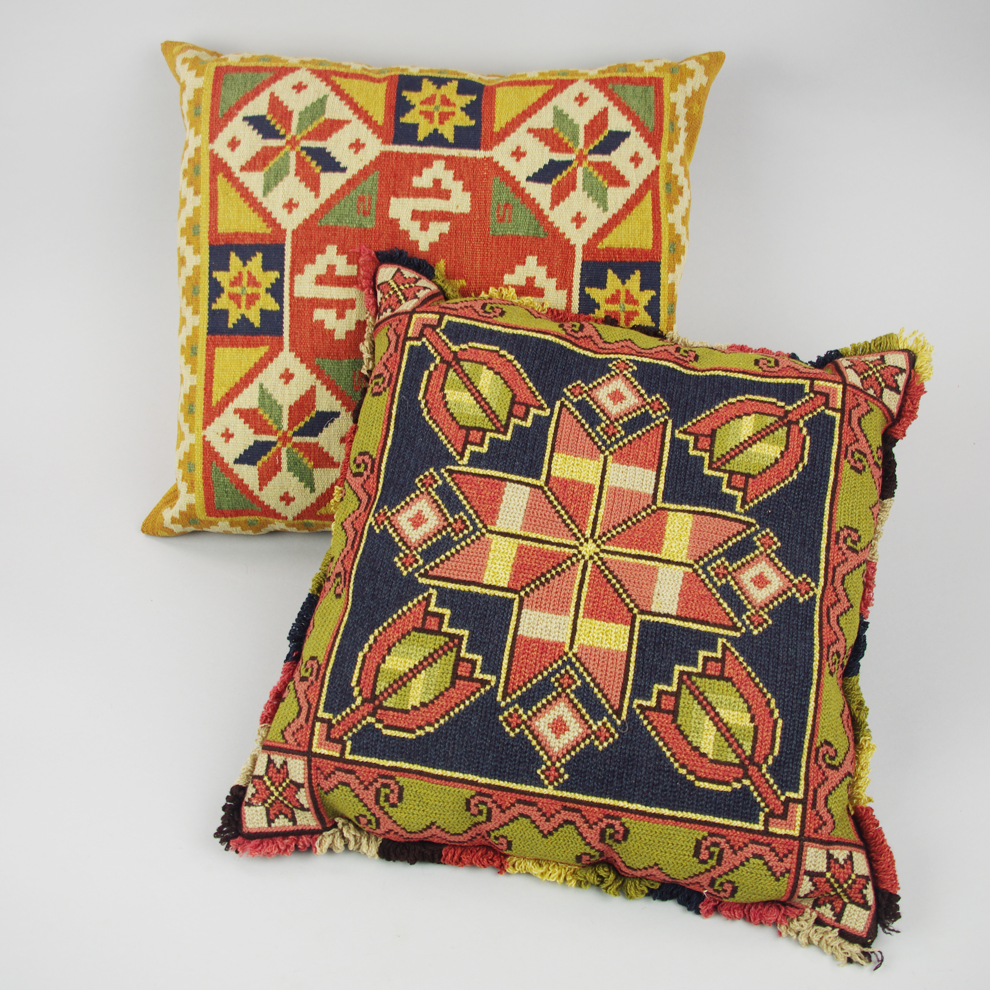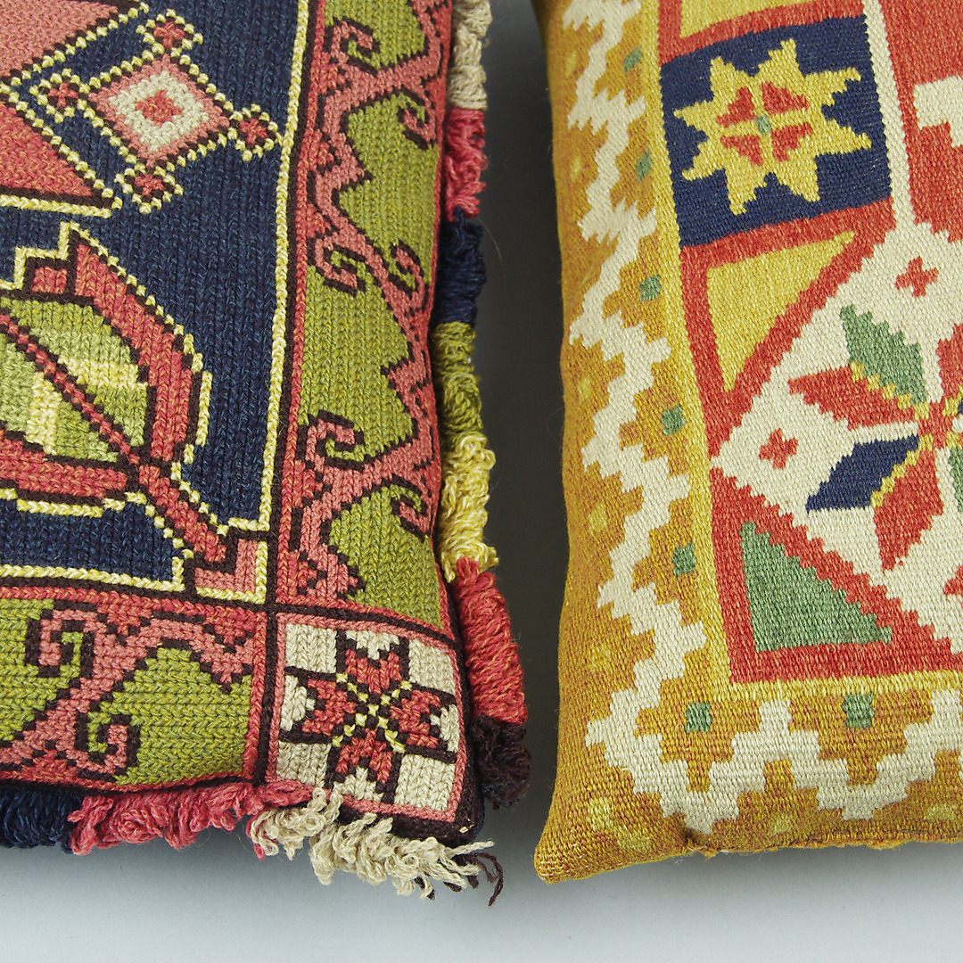 419664. KISSEN, 2 Stück rustikal bestickt.