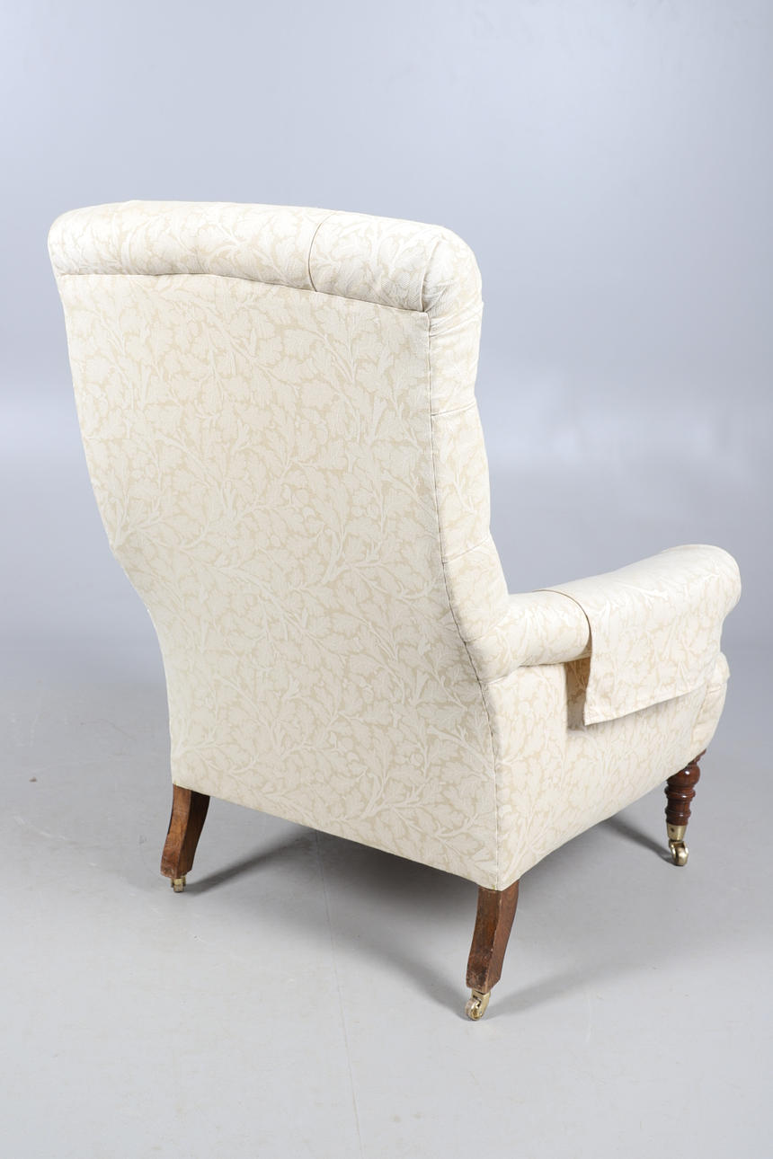 4197452. EIN VIKTORIANISCHER GEPOLSTERTER SESSEL MIT KNOPFLEHNE.