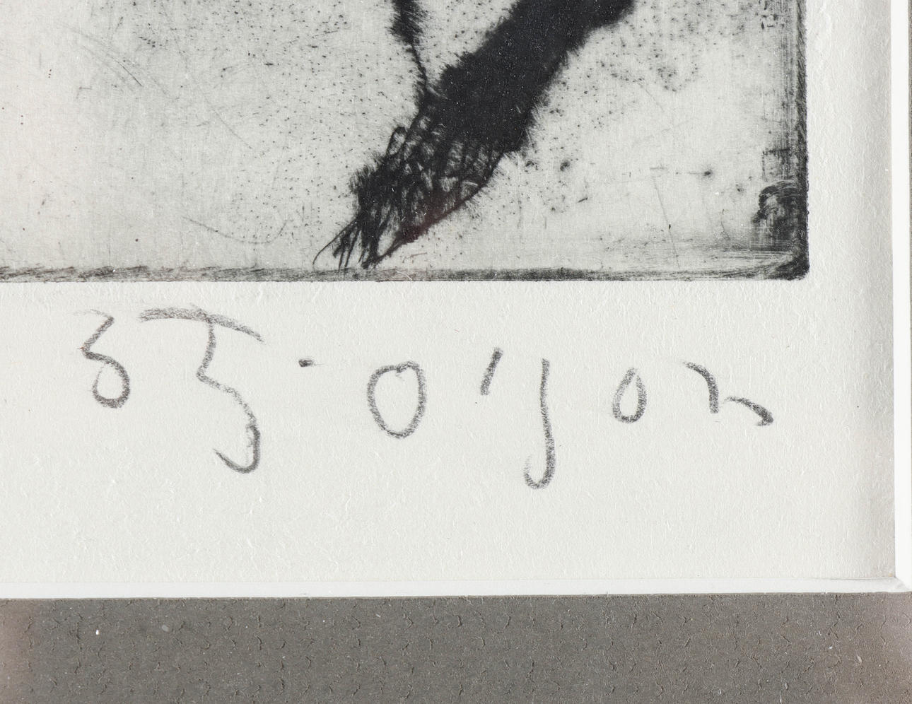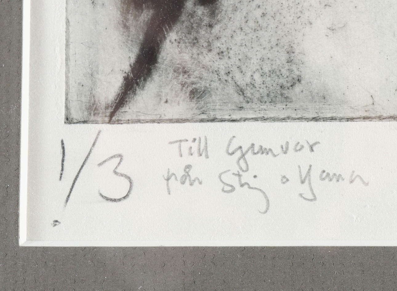 Radierung, signiert und nummeriert 1/3, mit Widmung.
