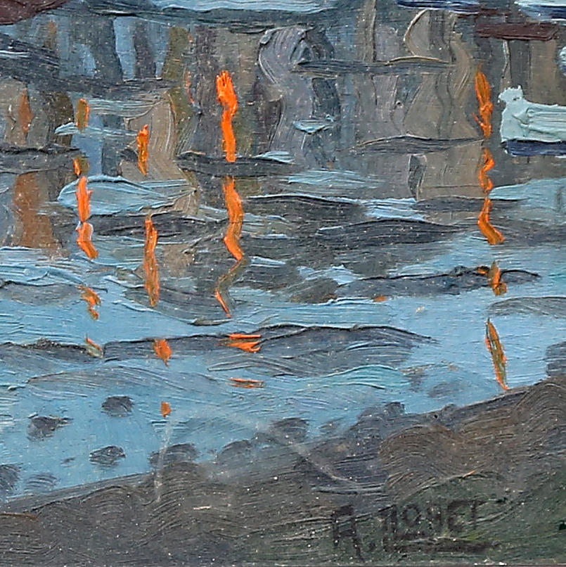 Es wurde nicht außerhalb des Rahmens untersucht. Holzrahmen mit Defekten bemalt, mit Schutzglas.
