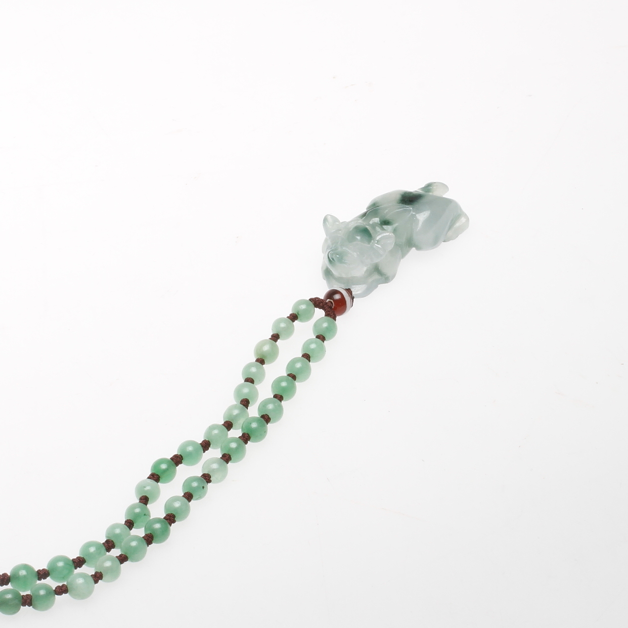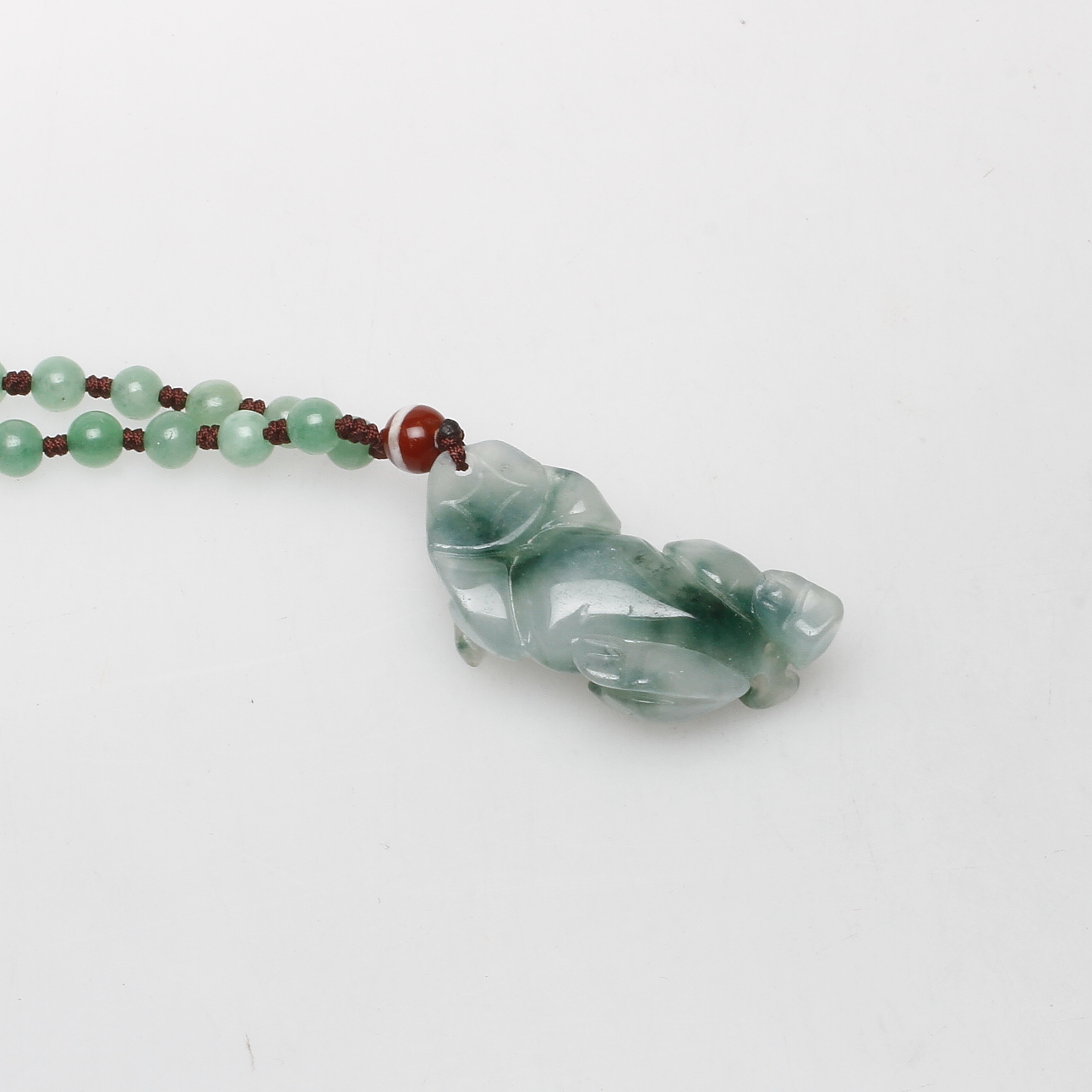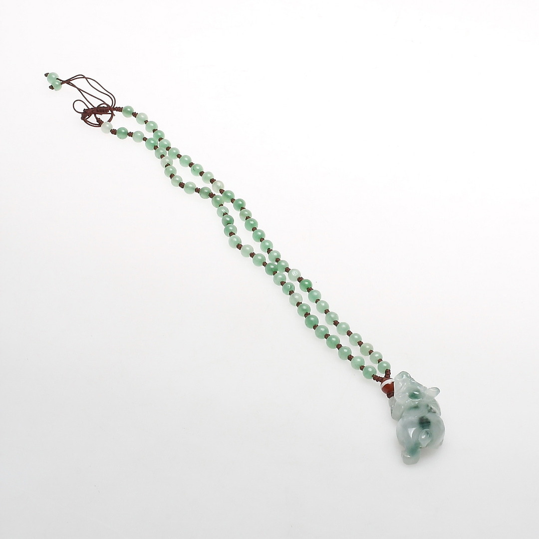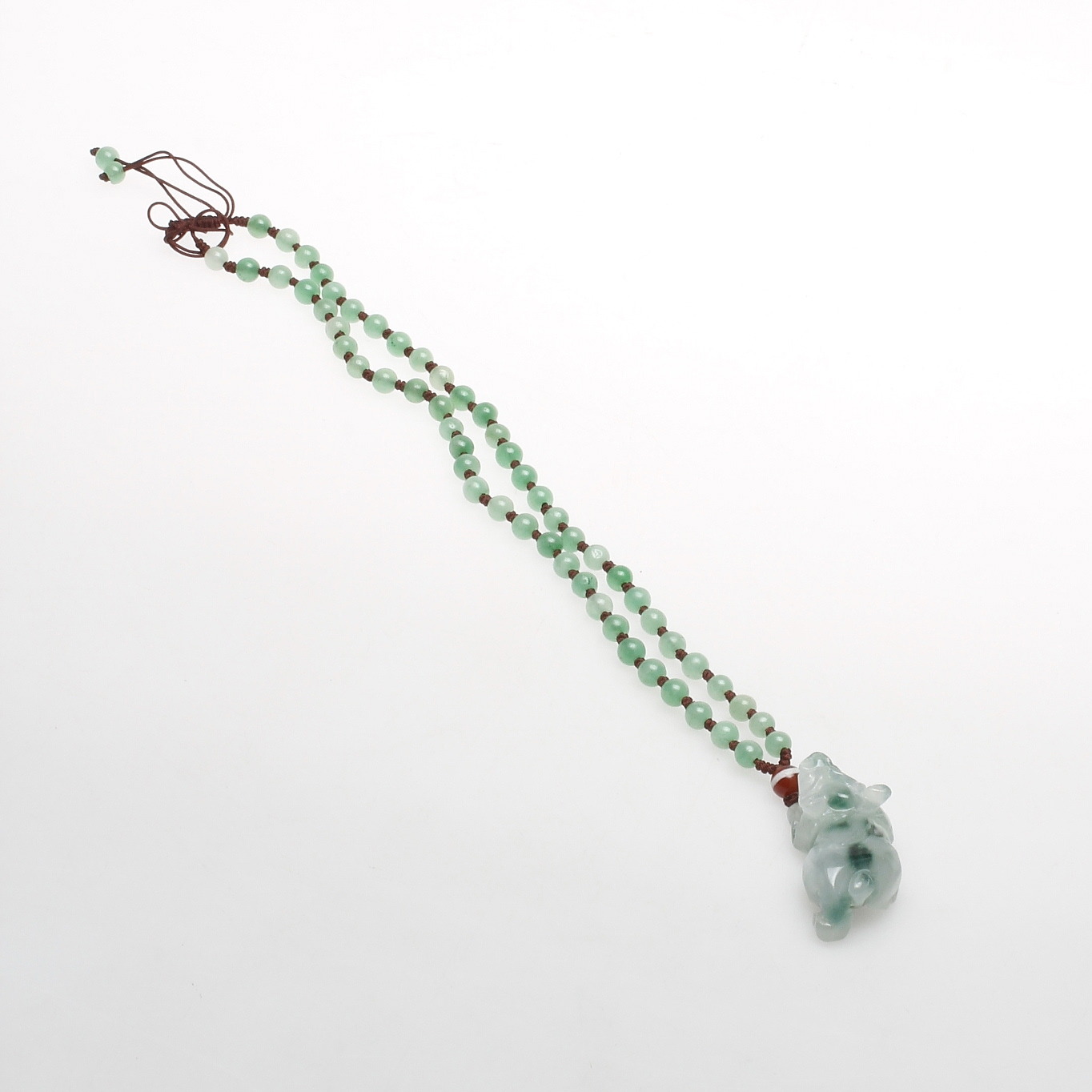 419924. HALSKETTE mit NETSUKE, grüner Stein, ostindisch, 20. Jh.