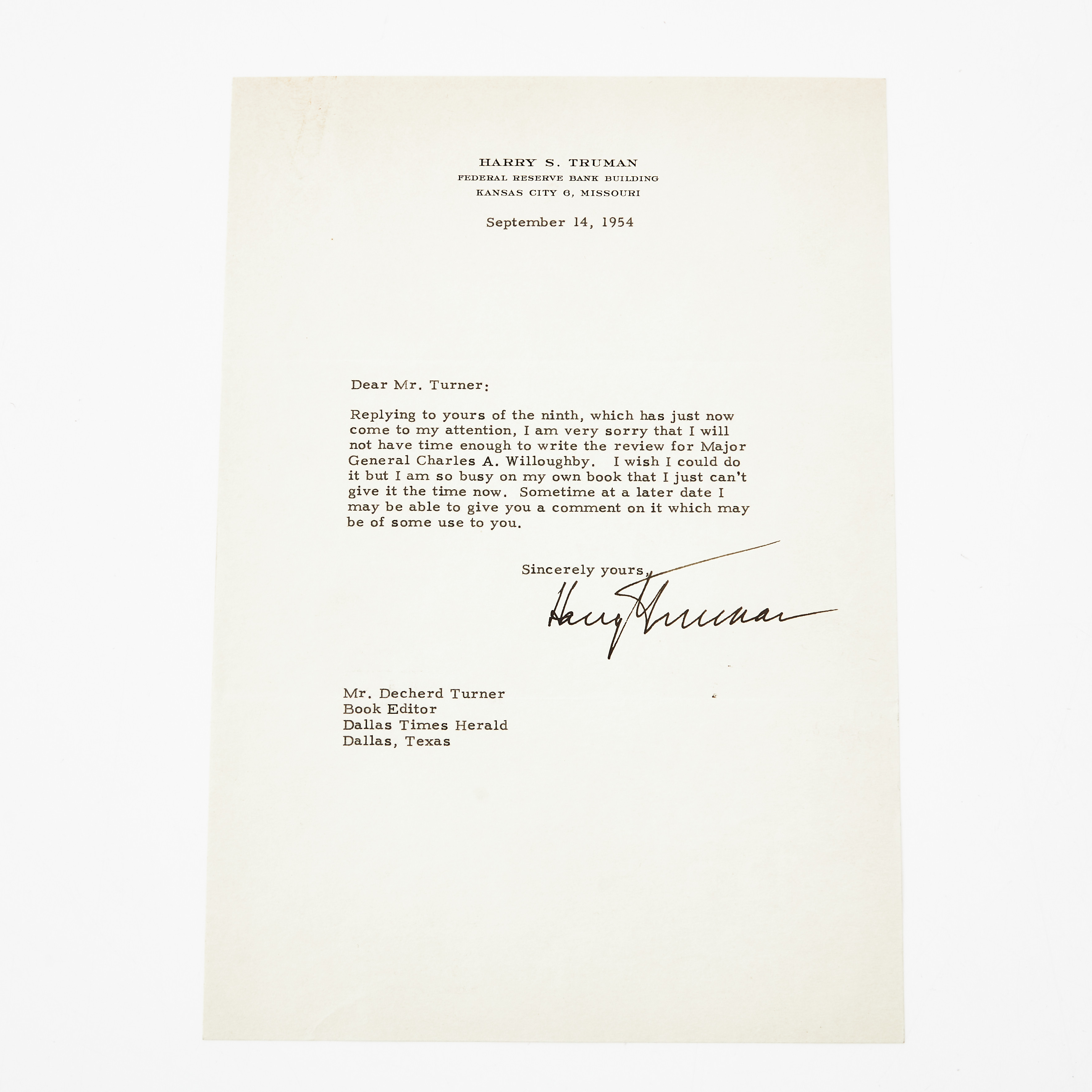 4199762. HARRY S. TRUMAN, UNTERSCHRIEBENER BRIEF, 1954.