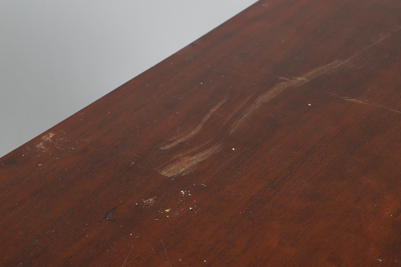 Einige Spuren und Kratzer an der Oberseite, einige Risse und Abnutzungen an den Seiten der Oberseite, allgemeine Gebrauchsspuren.