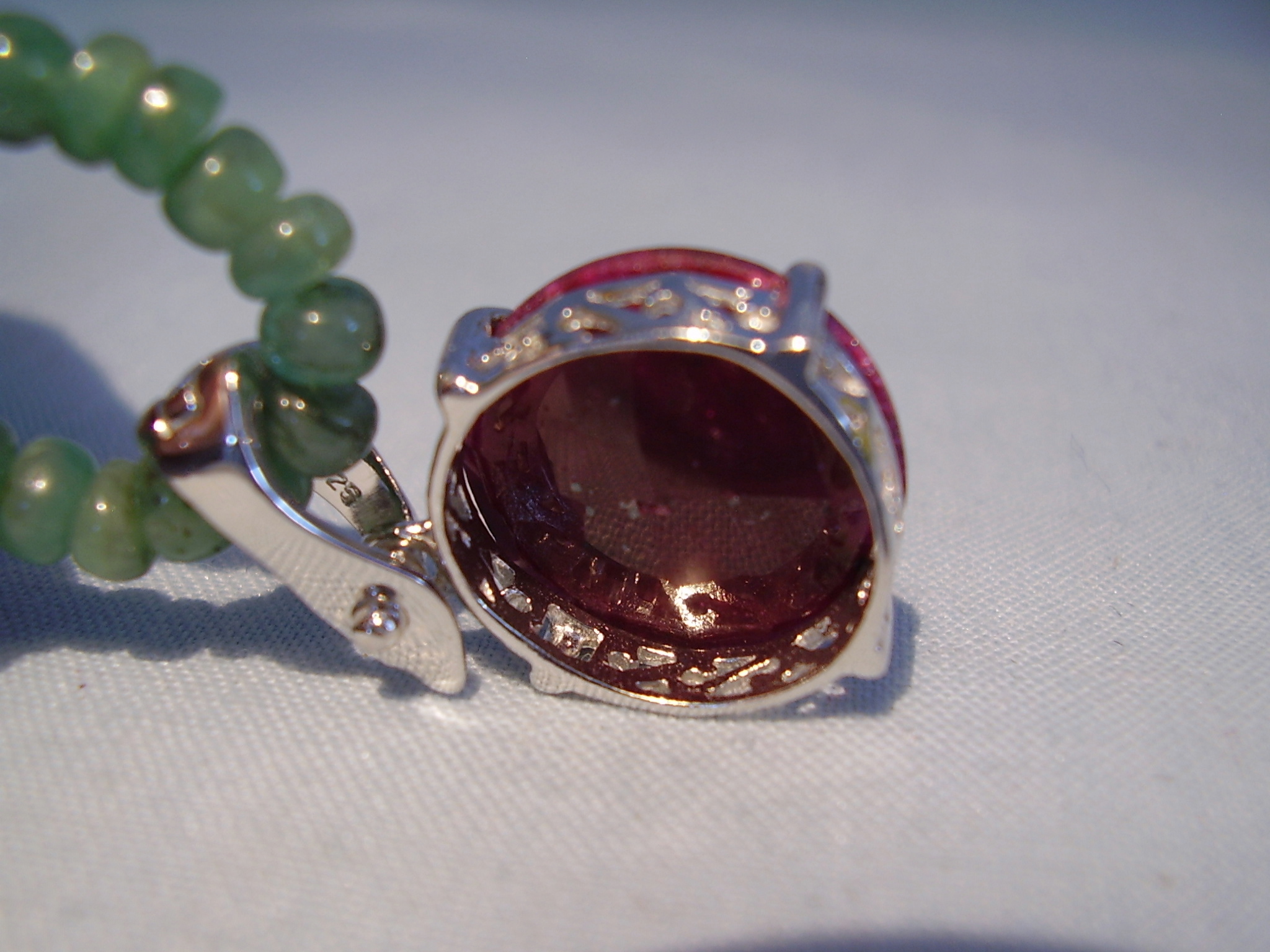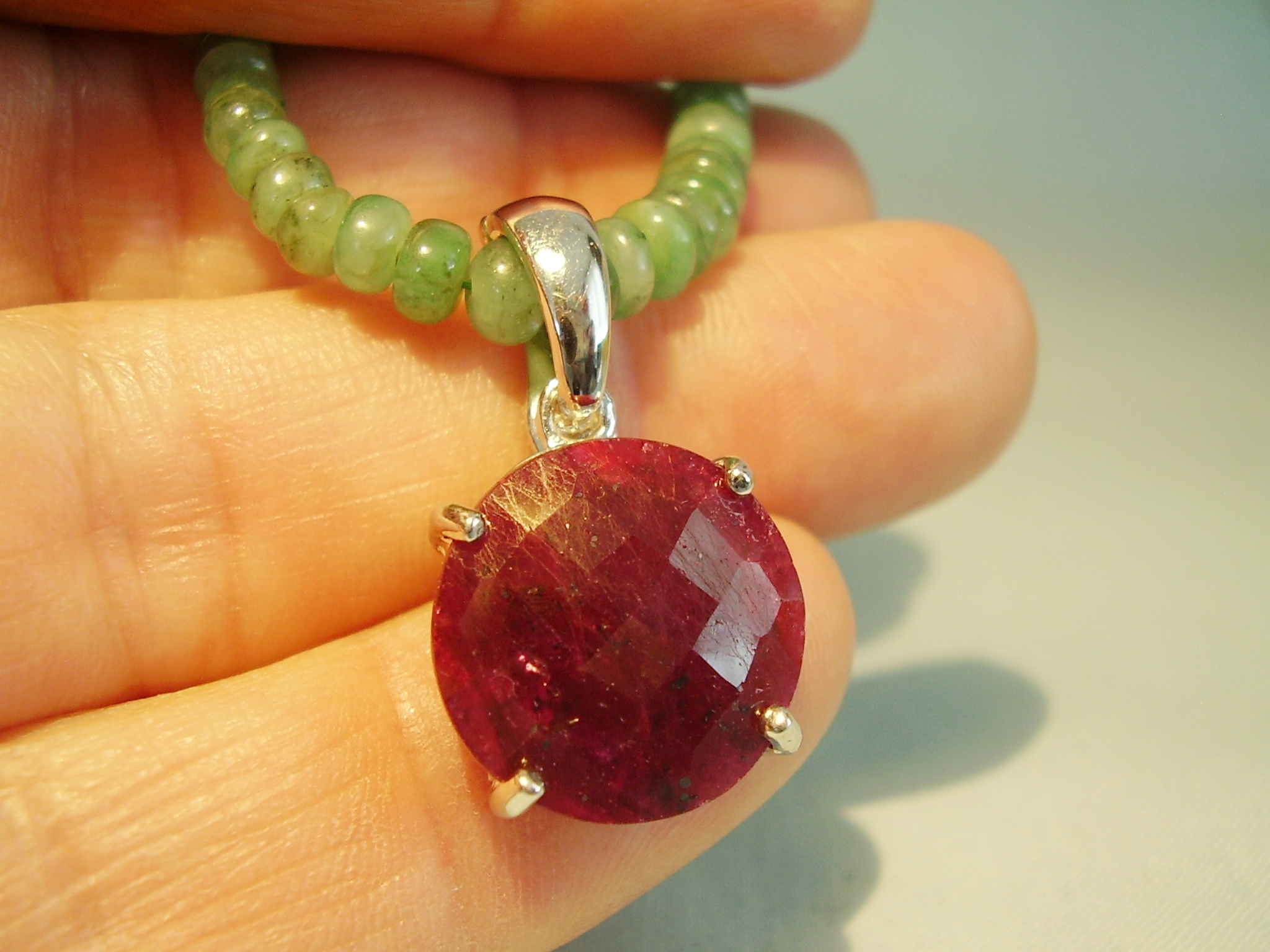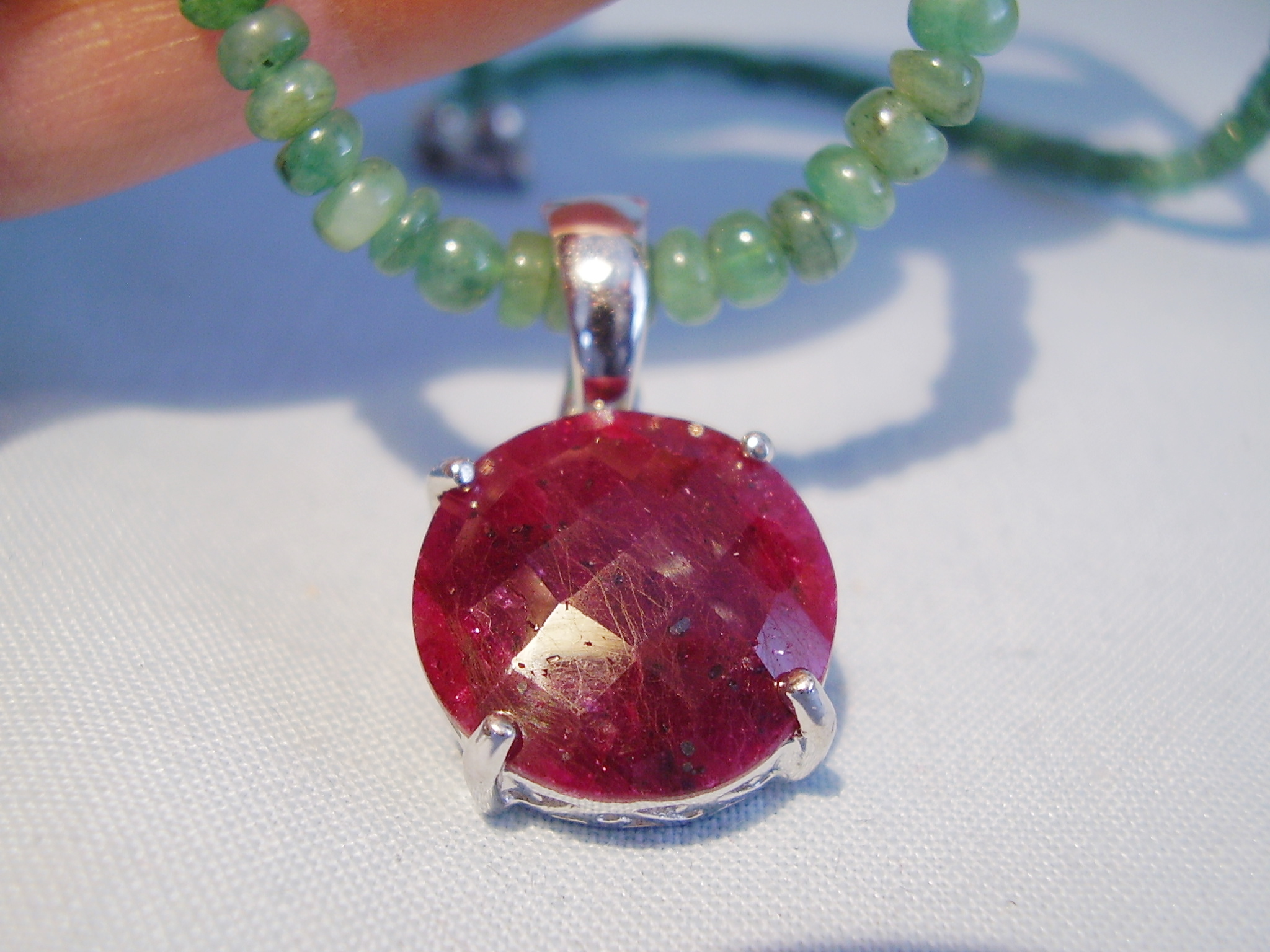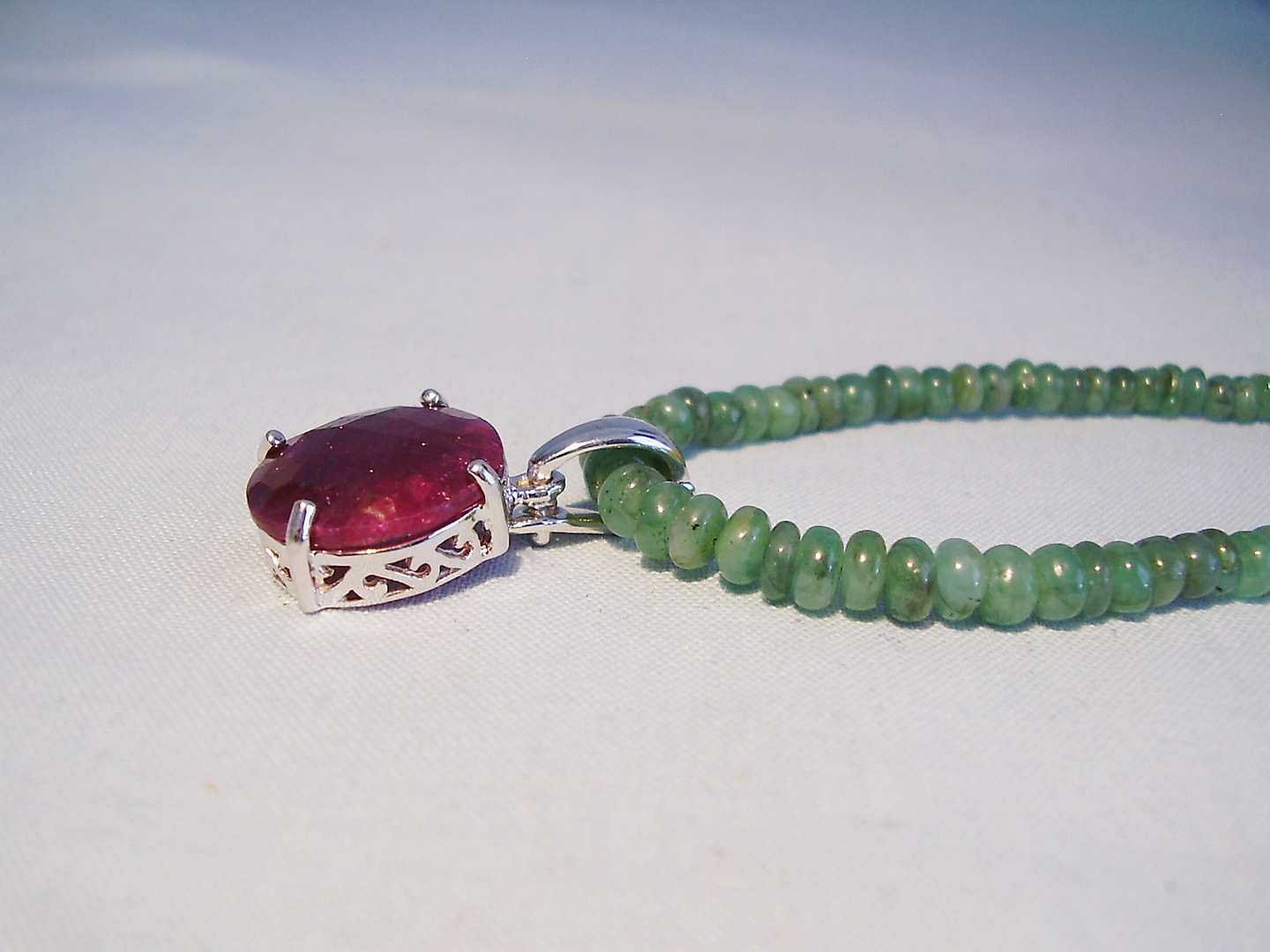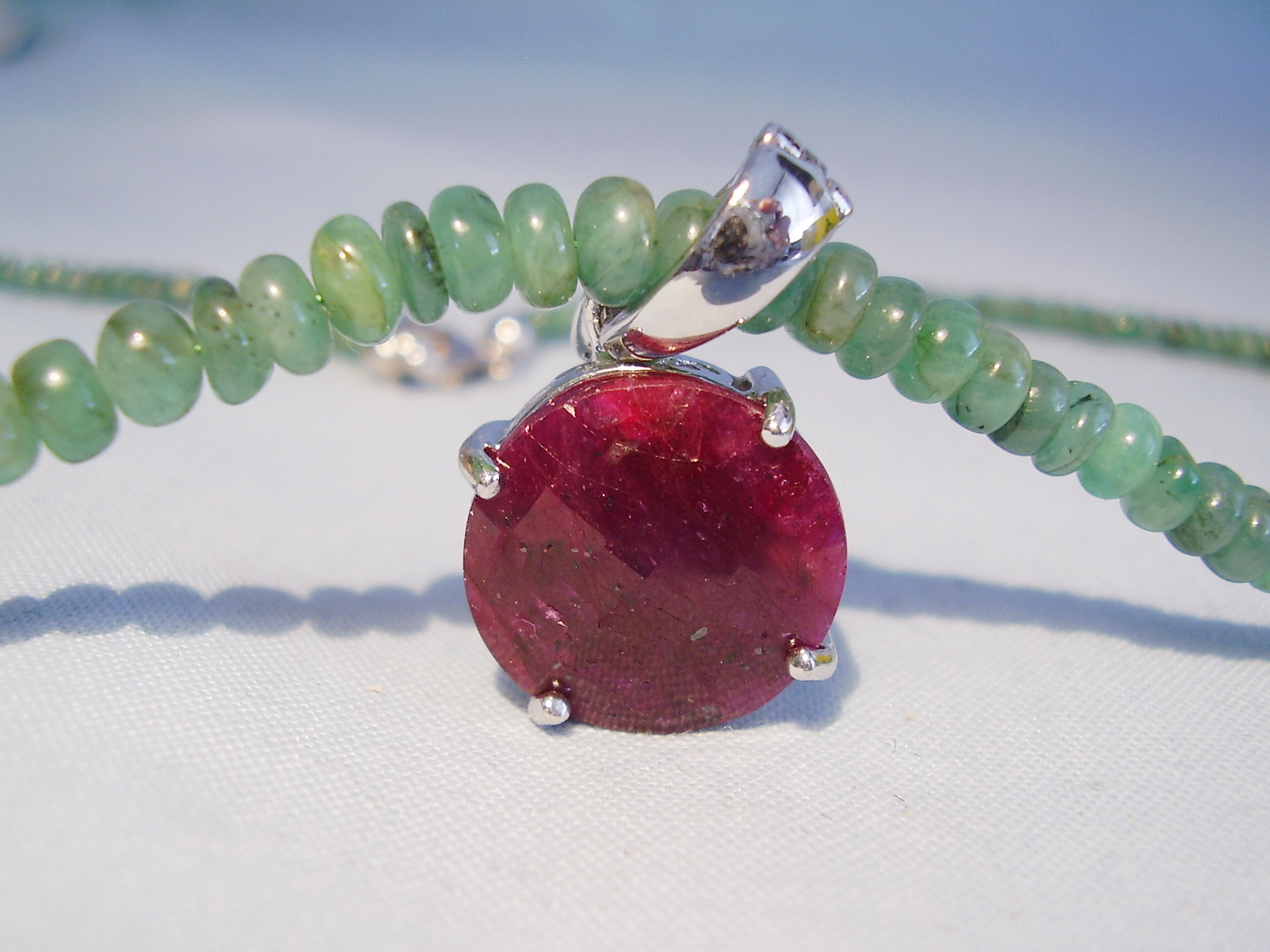 420068. SMARAGD KETTE mit Rubin-Anhänger.