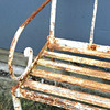 4207478. Antike schmiedeeiserne Kinderbank mit Gurtarbeitssitz.