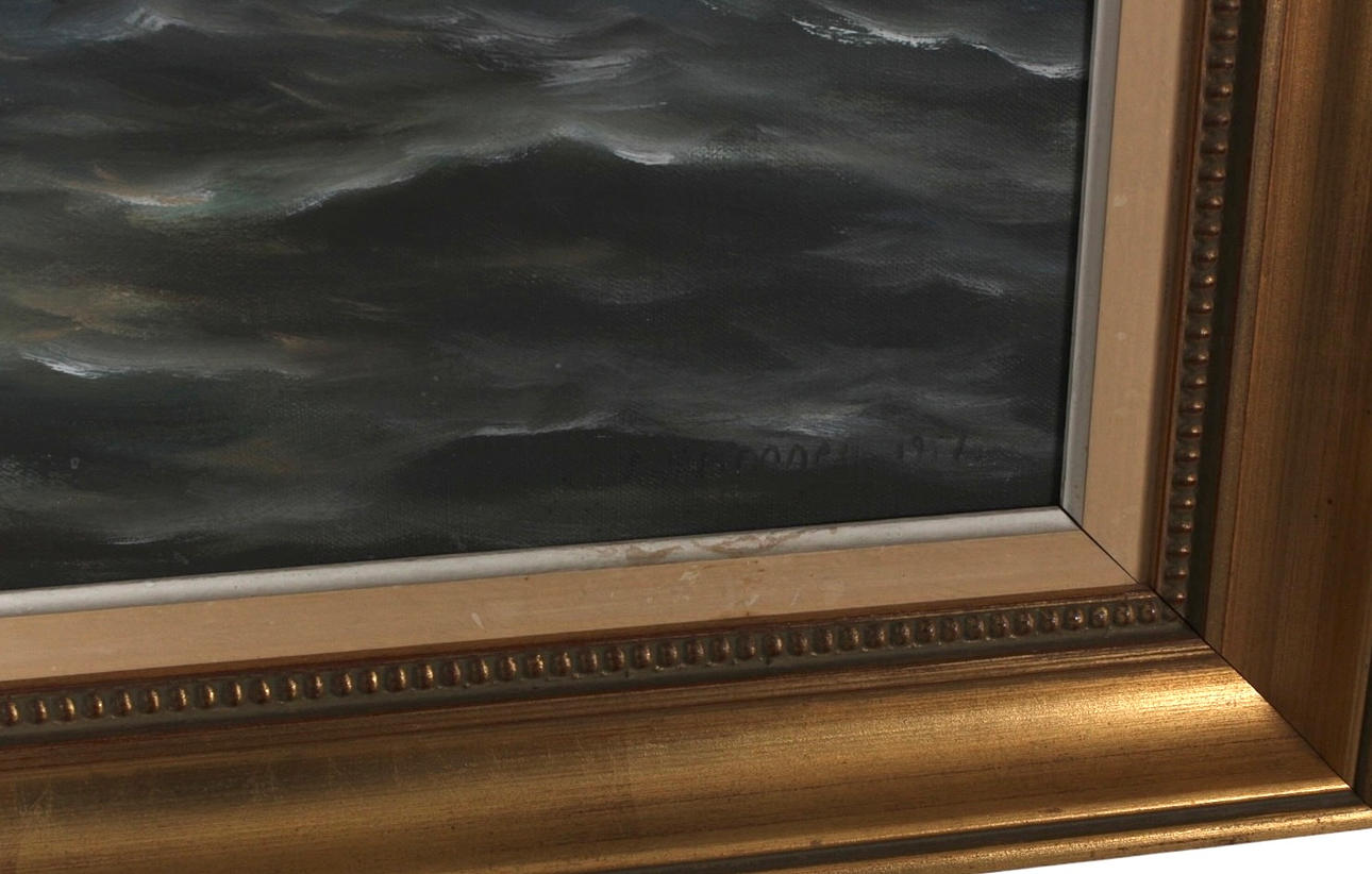 Schiffsmotiv, Bildmaße 46x56 cm, Gesamtmaße 68x63.