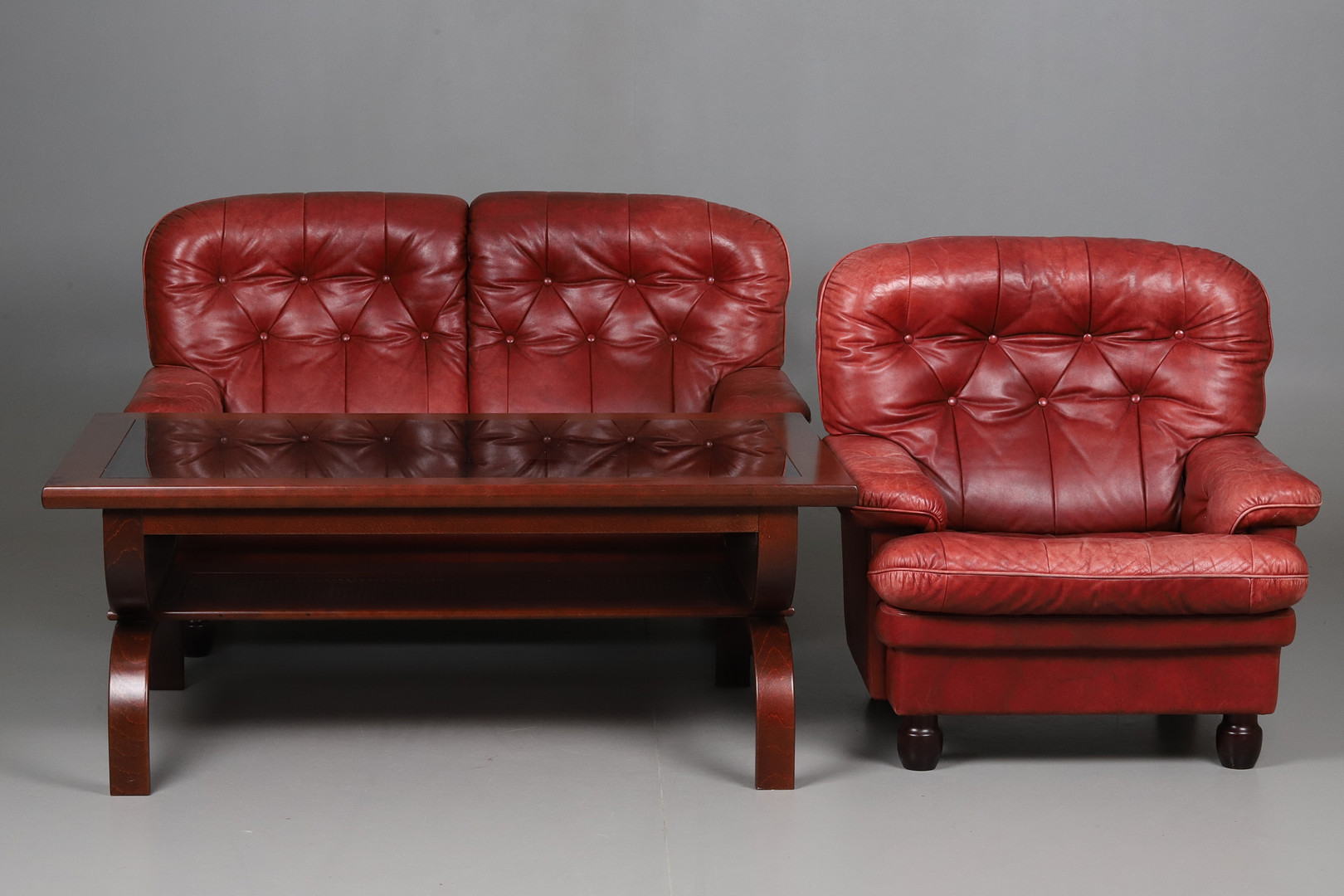 4208533. SOFAGARNITUR AUS LEDER, 3-teilig.