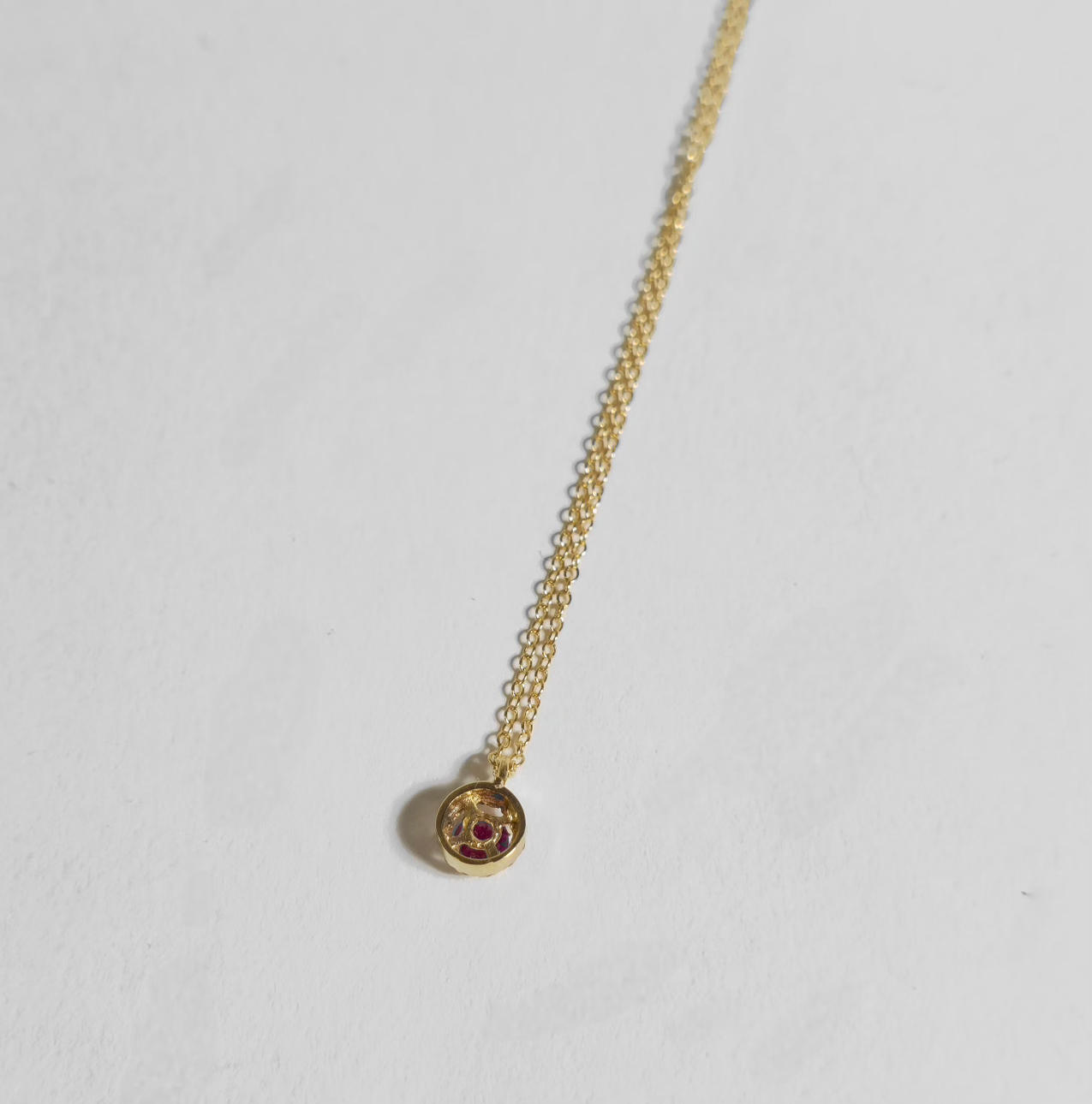 GOLDKETTE MIT RUBIN- UND DIAMANTANHÄNGER.