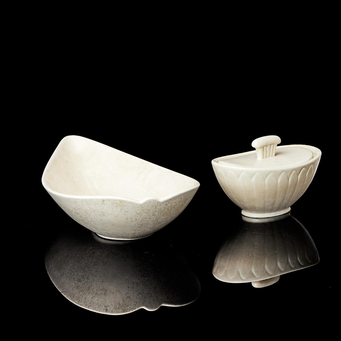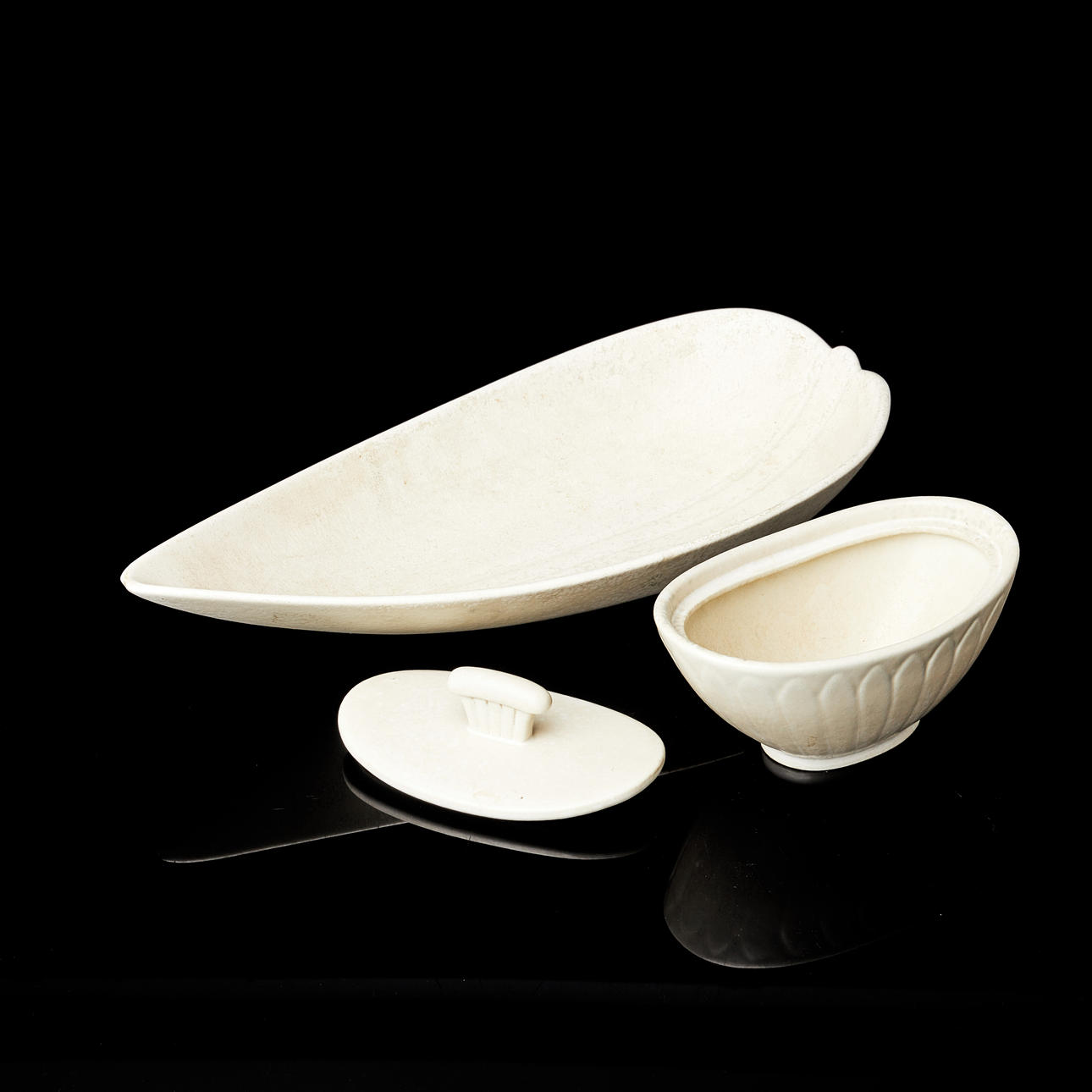 Schüsselschale: Breite 42,5, Tiefe 21, Schale mit Deckel: Höhe 11,5, Breite 19, Tiefe 12 cm.