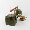 Glasbecher mit Außenbechern aus grünem Glas und Innenbechern aus gepresstem Glas.
