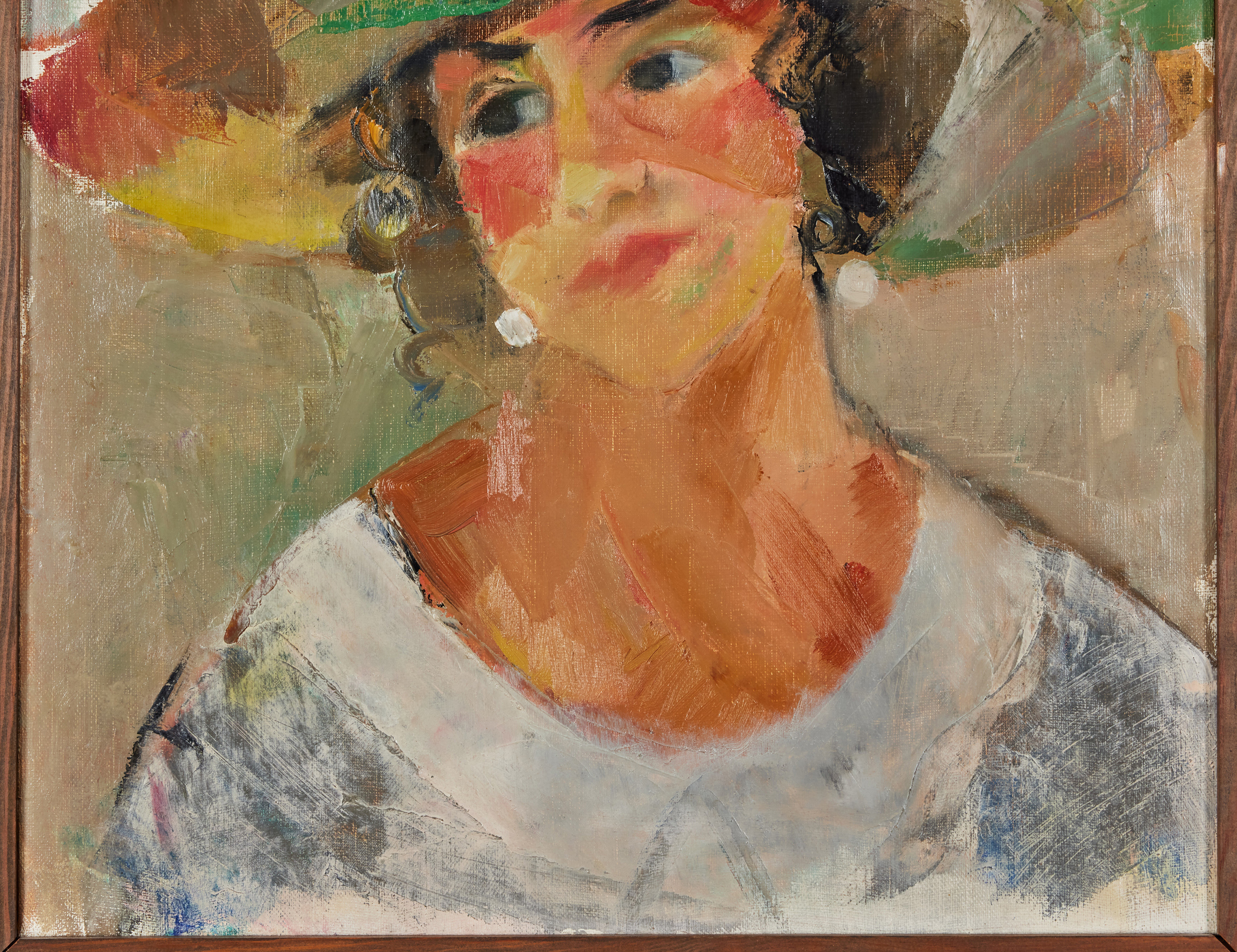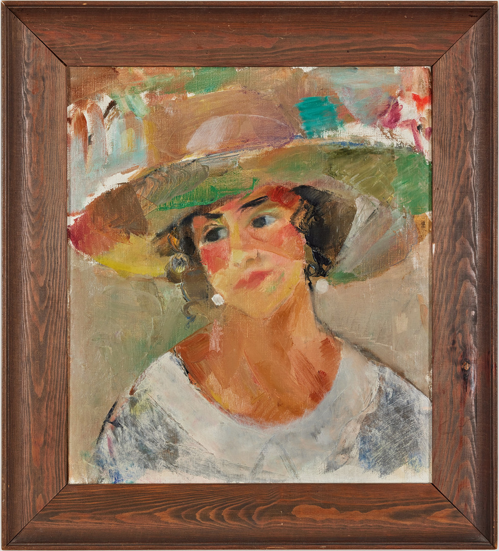 233. 4214727. JULES SCHYL. Frau mit breitkrempigem Hut.