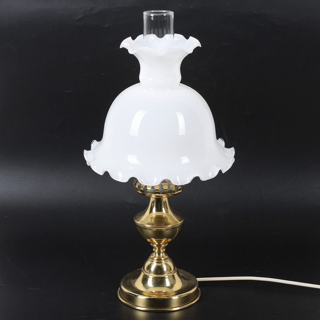 4214802. TISCHLAMPE, gelbes Metall und Glas.