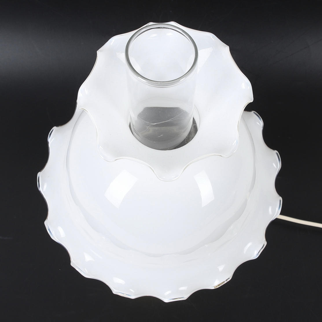 4214802. TISCHLAMPE, gelbes Metall und Glas.