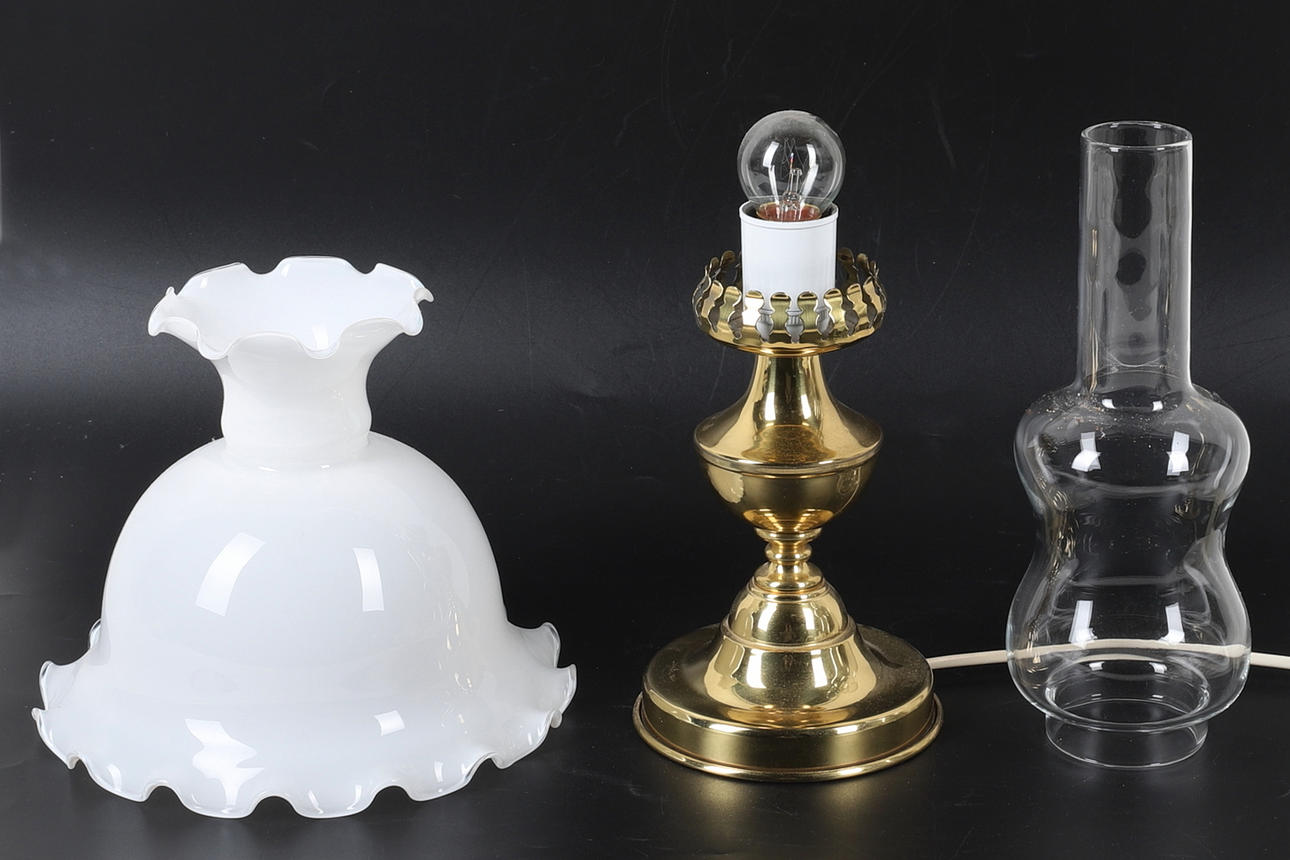 TISCHLAMPE, gelbes Metall und Glas.