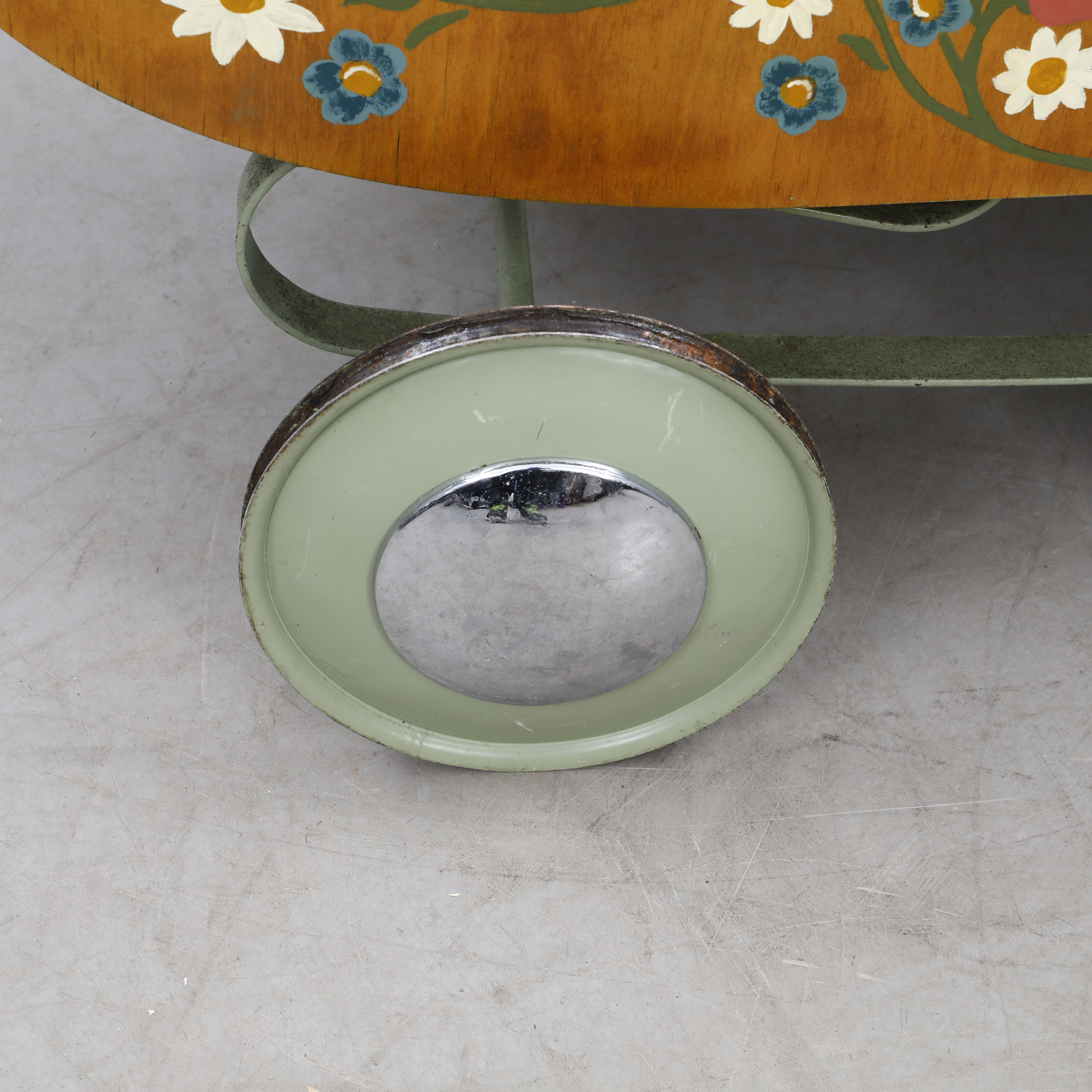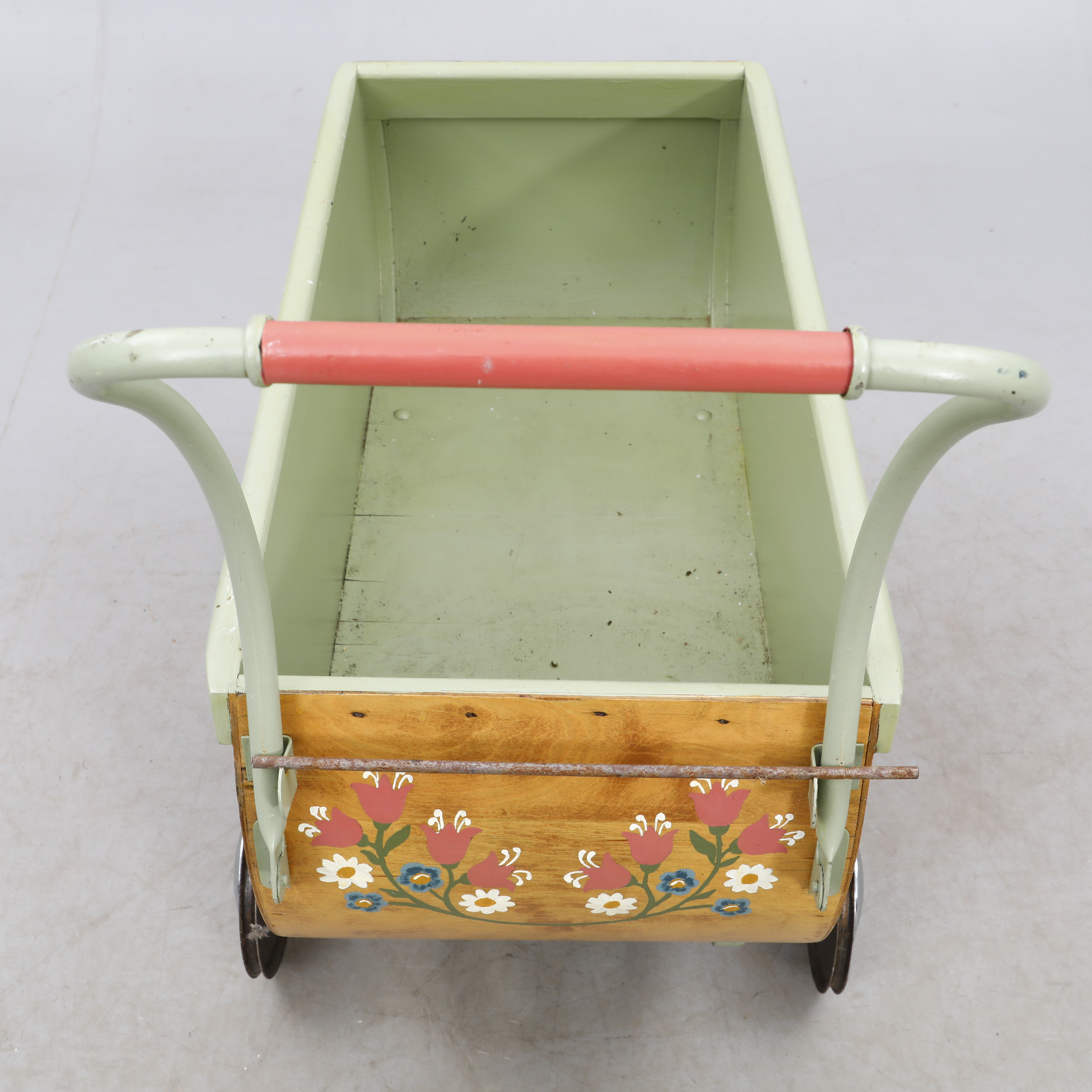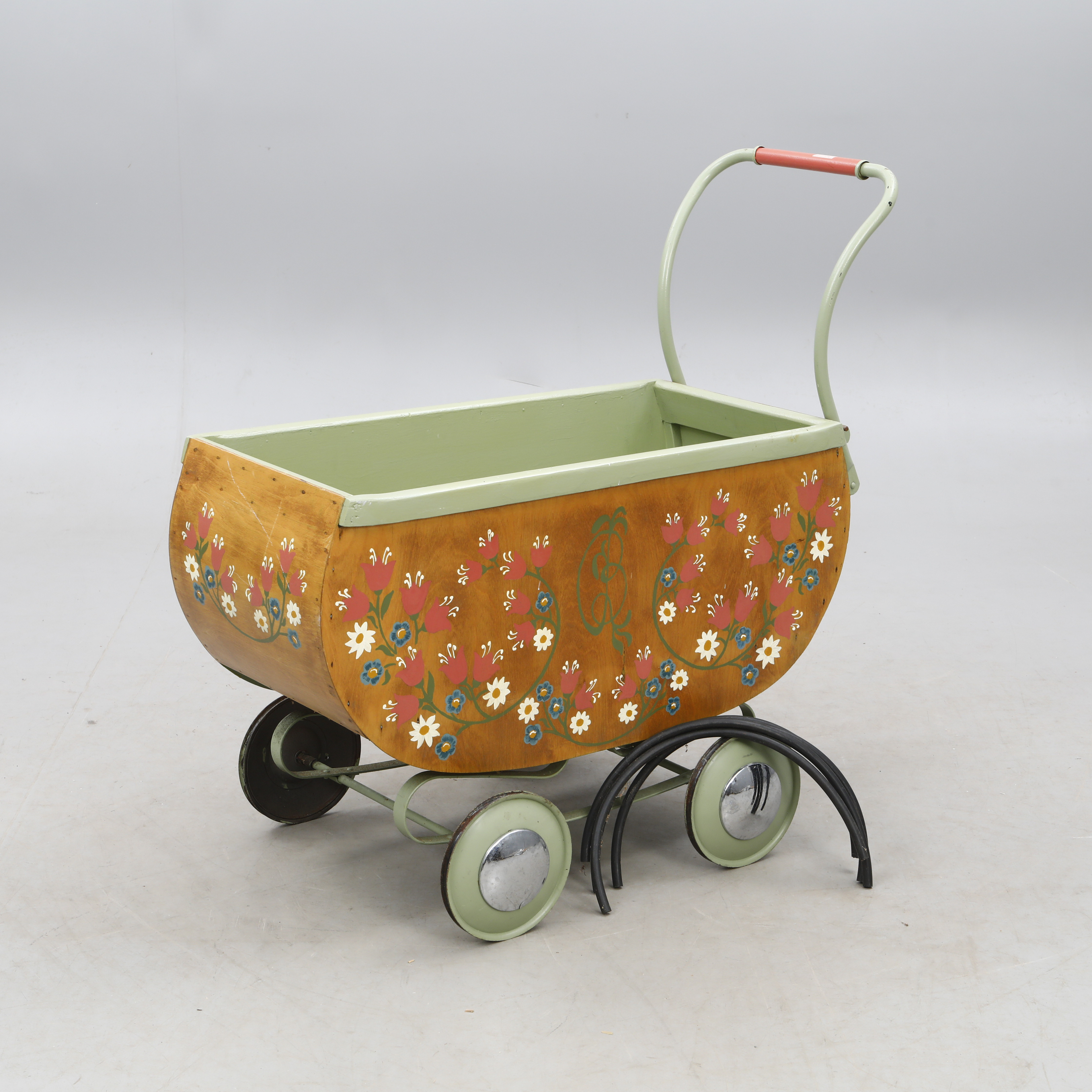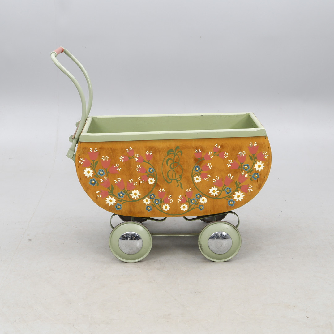 4215840. Ein bemalter hölzerner Kinderwagen, 1940-50er Jahre.
