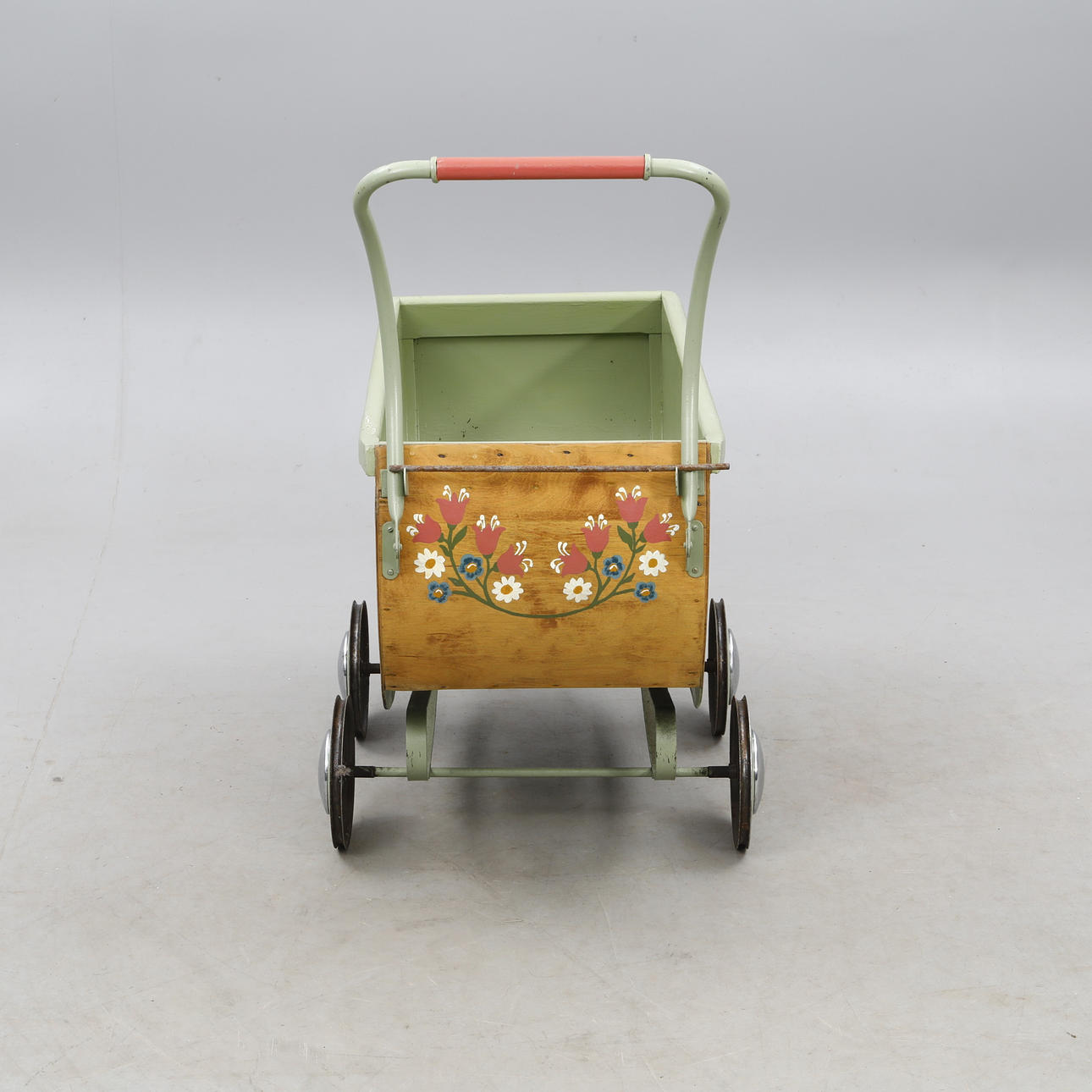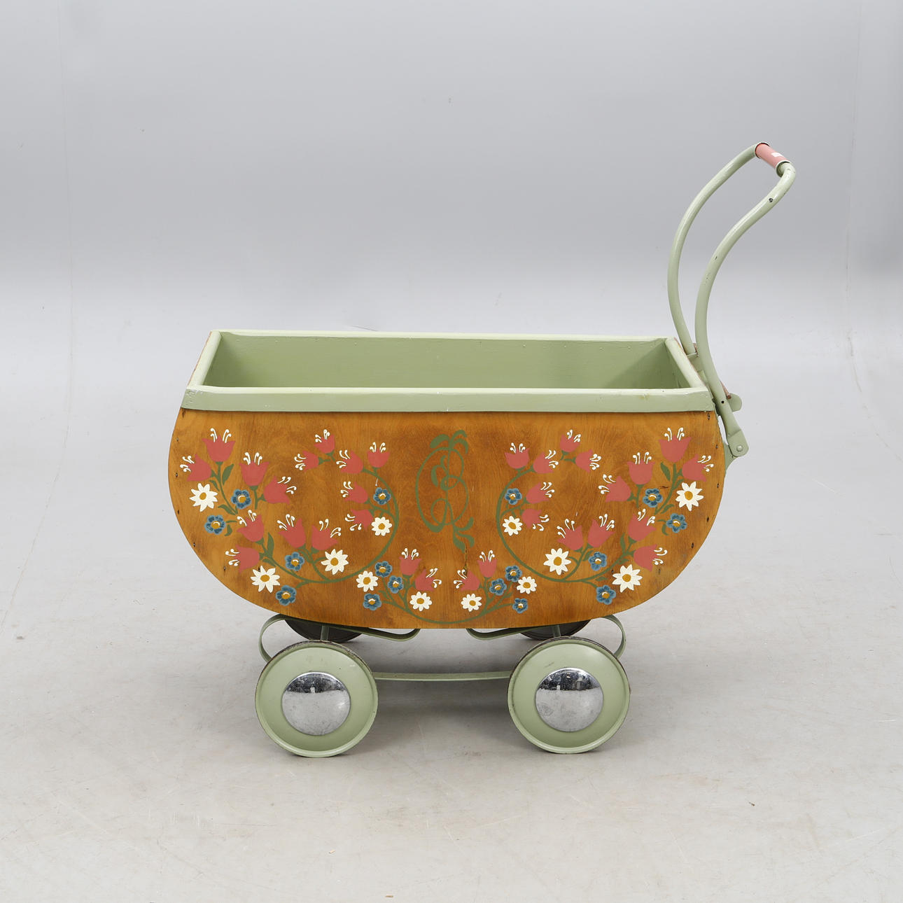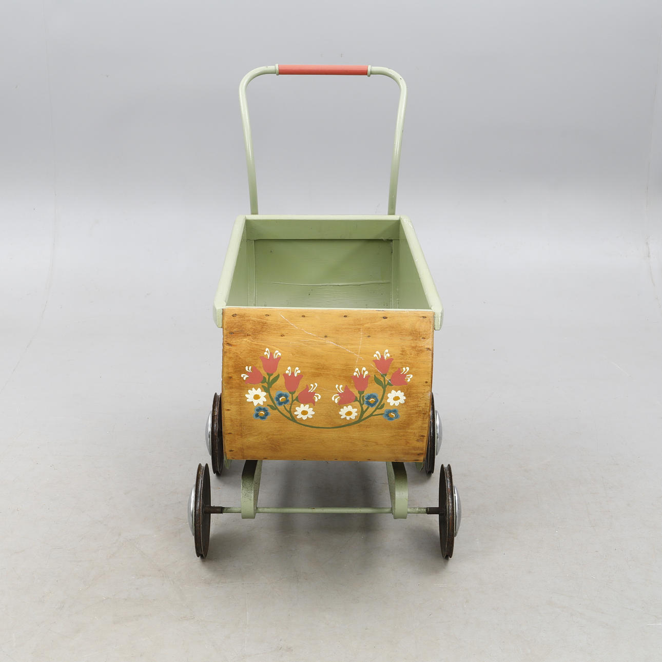 4215840. Ein bemalter hölzerner Kinderwagen, 1940-50er Jahre.